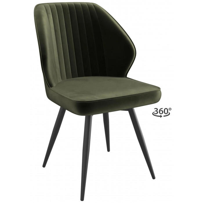 Обивка стула выполнена из мягкого и приятного на ощупь велюра, который не только выглядит стильно, но и обеспечивает дополнительный комфорт. Велюр устойчив к износу и легко очищается, что делает стул практичным выбором для повседневного использования. Металлическое основание придает конструкции прочность и долговечность, а также добавляет стулу современный акцент. Поворотный механизм на 360 градусов обеспечивает мобильность и удобство, позволяя легко менять положение стула без лишних усилий.
