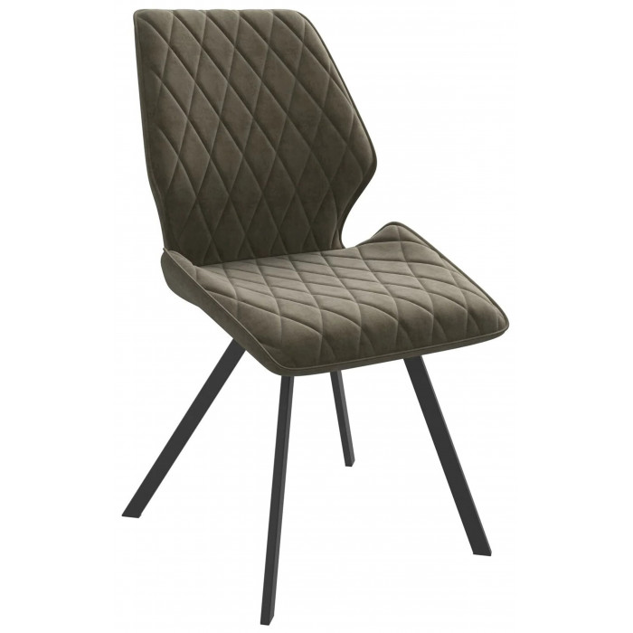 Обивка стула выполнена из мягкого и приятного на ощупь велюра, который не только выглядит роскошно, но и обеспечивает дополнительный комфорт. Ромбовидная строчка по всей обивке добавляет текстуру и изысканность, делая стул настоящим произведением искусства. Металлическое основание придает конструкции прочность и долговечность.