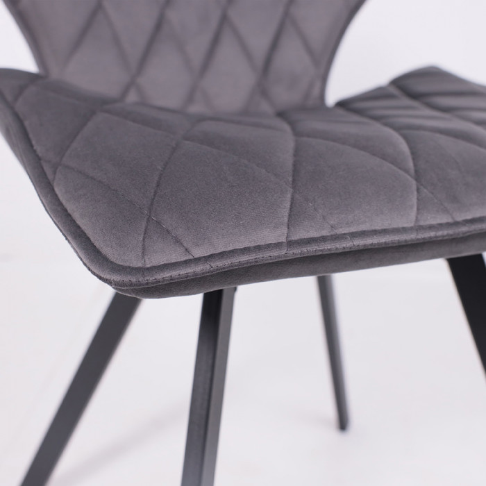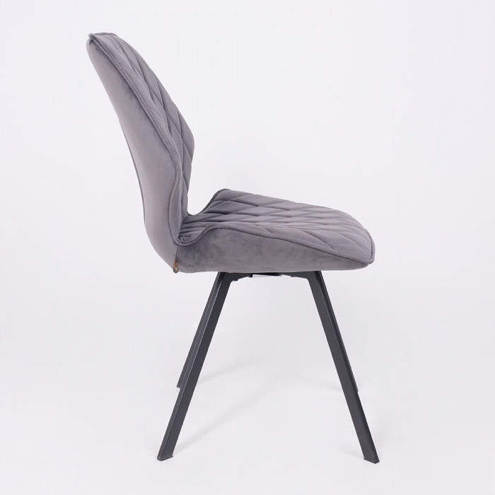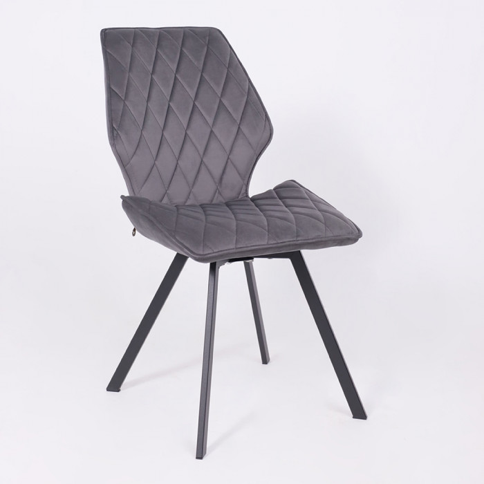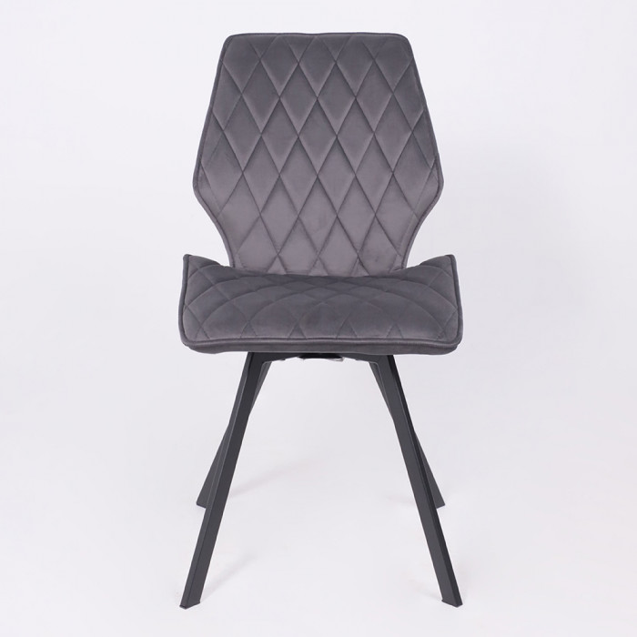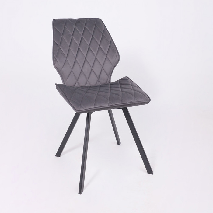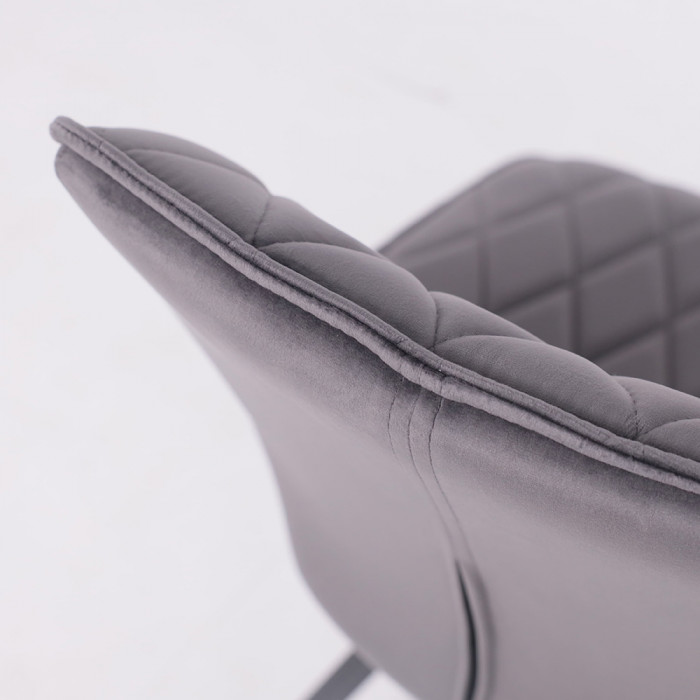 Обивка стула выполнена из мягкого и приятного на ощупь велюра, который не только выглядит роскошно, но и обеспечивает дополнительный комфорт. Ромбовидная строчка по всей обивке добавляет текстуру и изысканность, делая стул настоящим произведением искусства. Металлическое основание придает конструкции прочность и долговечность.