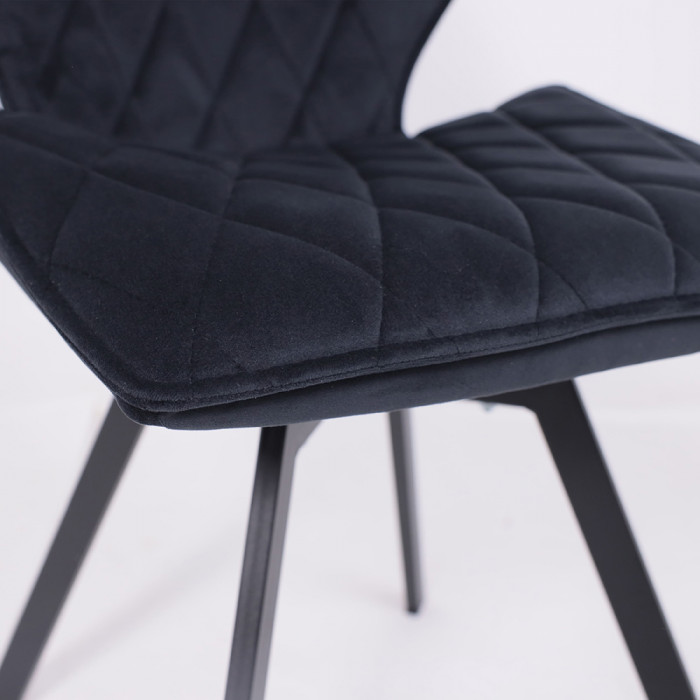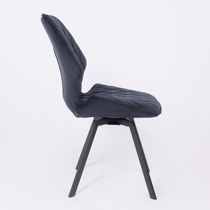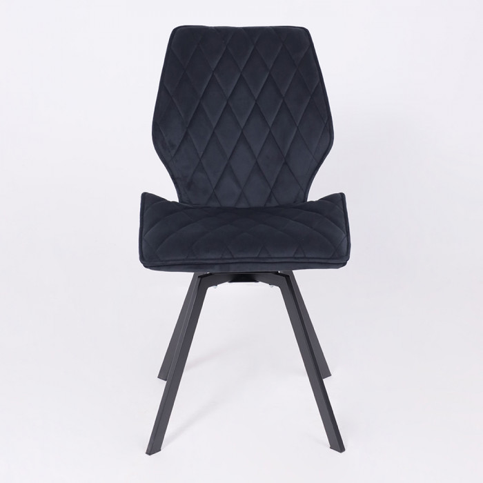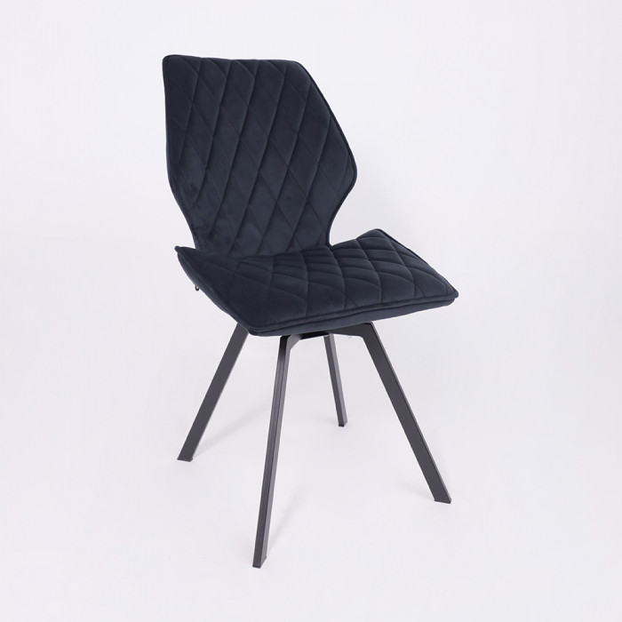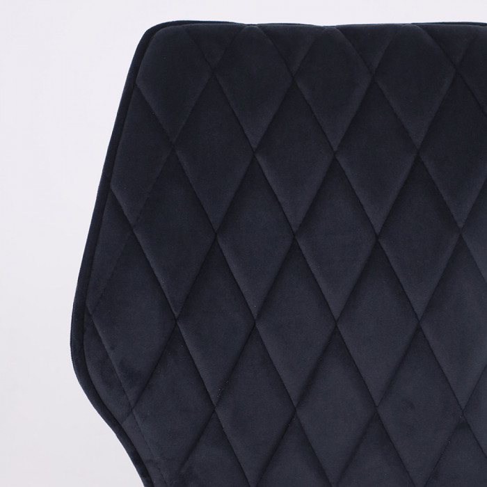 Обивка стула выполнена из мягкого и приятного на ощупь велюра, который не только выглядит роскошно, но и обеспечивает дополнительный комфорт. Ромбовидная строчка по всей обивке добавляет текстуру и изысканность, делая стул настоящим произведением искусства. Металлическое основание придает конструкции прочность и долговечность. Поворотный механизм на 360 градусов обеспечивает мобильность и удобство, позволяя легко менять положение стула без лишних усилий.