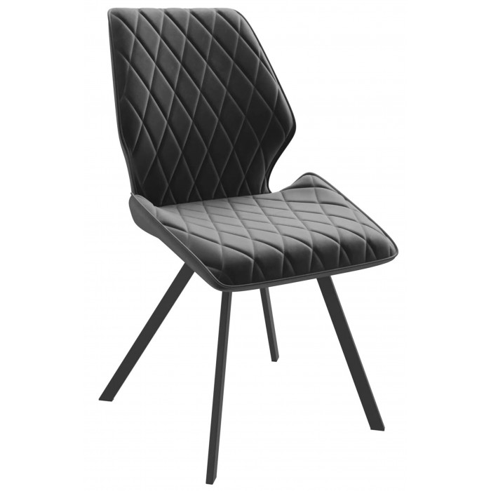 Обивка стула выполнена из мягкого и приятного на ощупь велюра, который не только выглядит роскошно, но и обеспечивает дополнительный комфорт. Ромбовидная строчка по всей обивке добавляет текстуру и изысканность, делая стул настоящим произведением искусства. Металлическое основание придает конструкции прочность и долговечность. Поворотный механизм на 360 градусов обеспечивает мобильность и удобство, позволяя легко менять положение стула без лишних усилий.