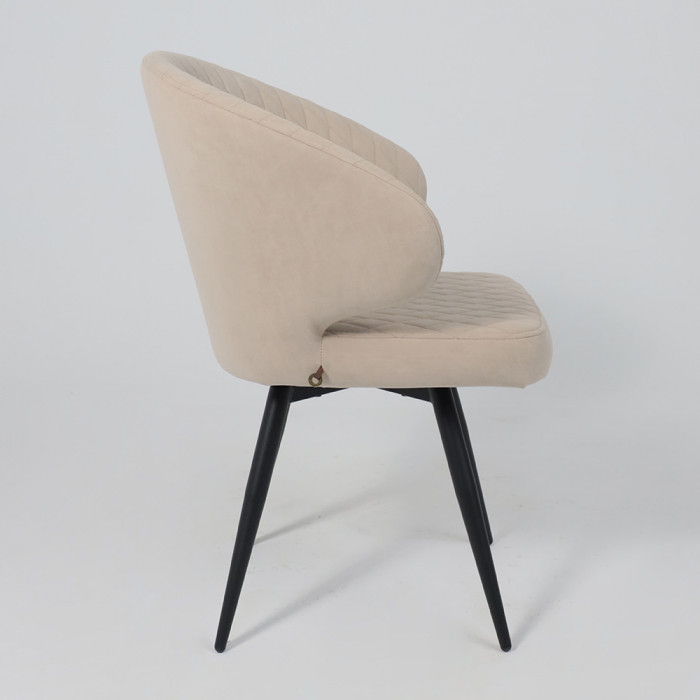 Обивка стула выполнена из мягкого и приятного на ощупь велюра, который придает ему уютный и элегантный вид. Велюр устойчив к износу и легко очищается, что делает Rob-R1 практичным решением для повседневного использования. Металлическое основание обеспечивает прочность и долговечность конструкции, а также добавляет стулу современный акцент. Поворотный механизм на 360 градусов делает стул мобильным и удобным, позволяя легко менять его положение без лишних усилий.