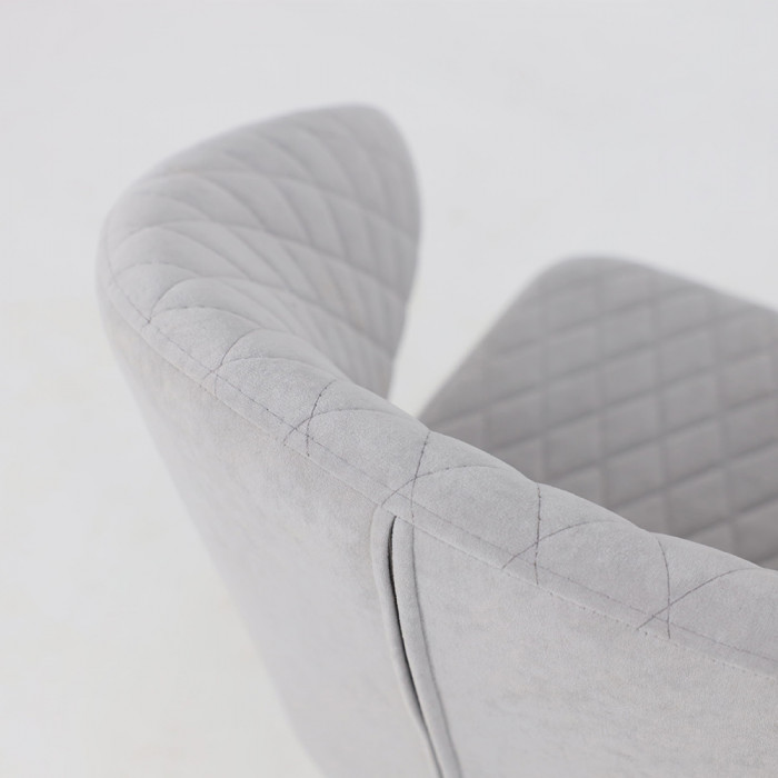 Обивка стула выполнена из мягкого и приятного на ощупь велюра, который придает ему уютный и элегантный вид. Велюр устойчив к износу и легко очищается, что делает Rob-R1 практичным решением для повседневного использования. Металлическое основание обеспечивает прочность и долговечность конструкции, а также добавляет стулу современный акцент. Поворотный механизм на 360 градусов делает стул мобильным и удобным, позволяя легко менять его положение без лишних усилий.