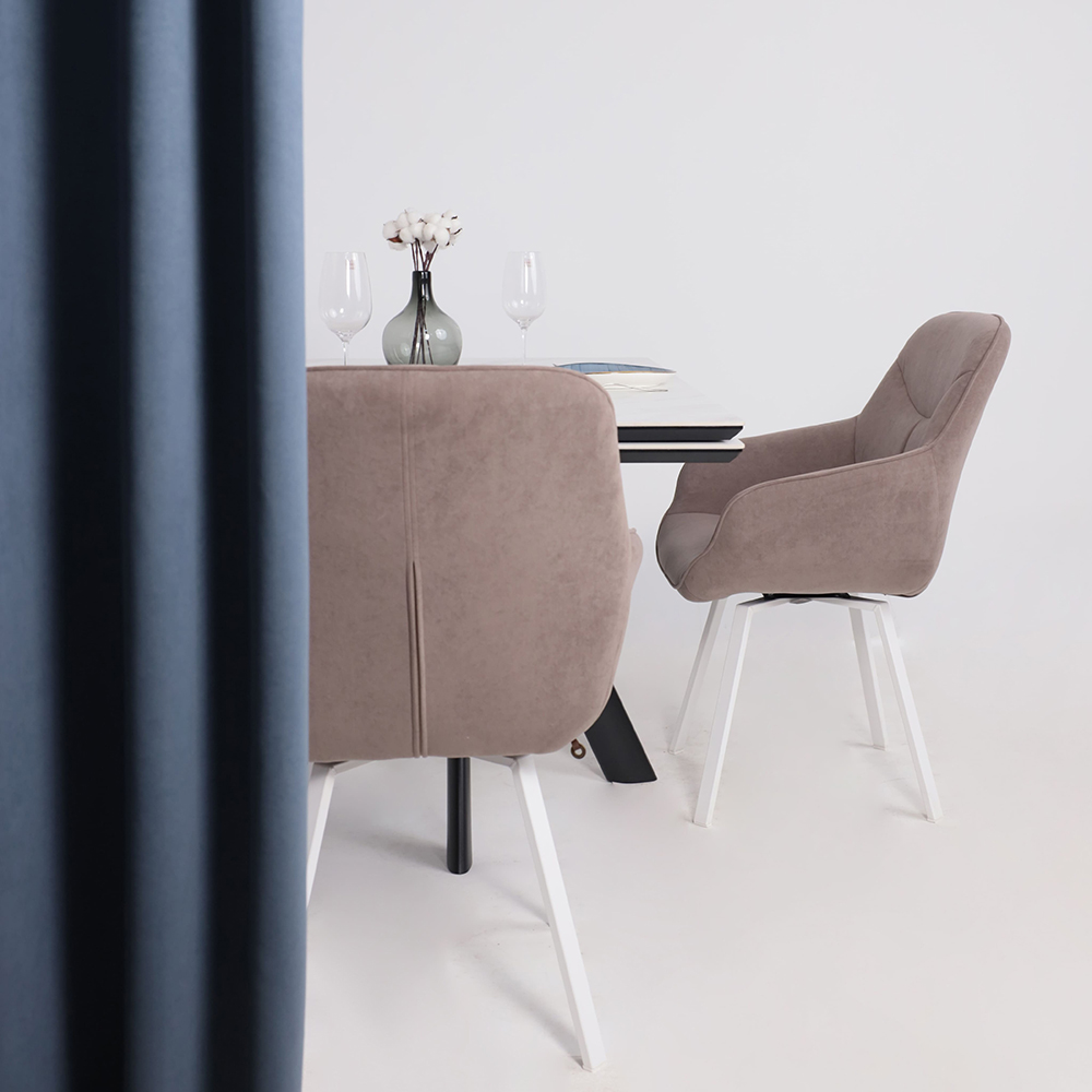 Обивка стула выполнена из мягкого и приятного на ощупь велюра, который придает ему уютный и элегантный вид. Велюр устойчив к износу и легко очищается, что делает Romeo Smile практичным решением для повседневного использования. Металлическое основание обеспечивает прочность и долговечность конструкции, а также добавляет стулу современный акцент. Поворотный механизм на 360 градусов делает стул мобильным и удобным, позволяя легко менять его положение без лишних усилий.