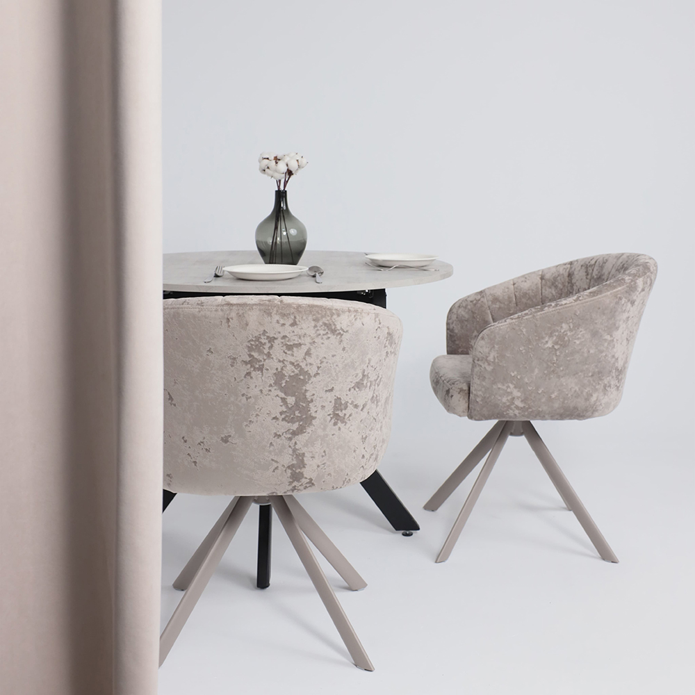 Модель сочетает в себе надёжность и комфорт. Велюровая обивка приятна на ощупь и устойчива к износу, а металлический каркас рассчитан на нагрузку до 100 кг. Поворотная функция добавляет стулу мобильности, делая его особенно удобным для обеденной зоны или рабочего уголка. SHELLY-R 360 — это практичный и стильный выбор для тех, кто ценит функциональность и комфорт в повседневной жизни.