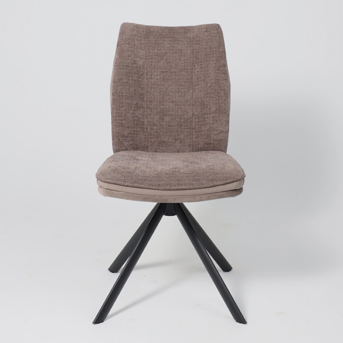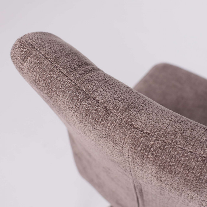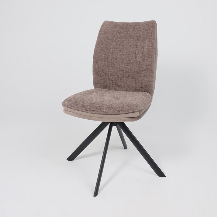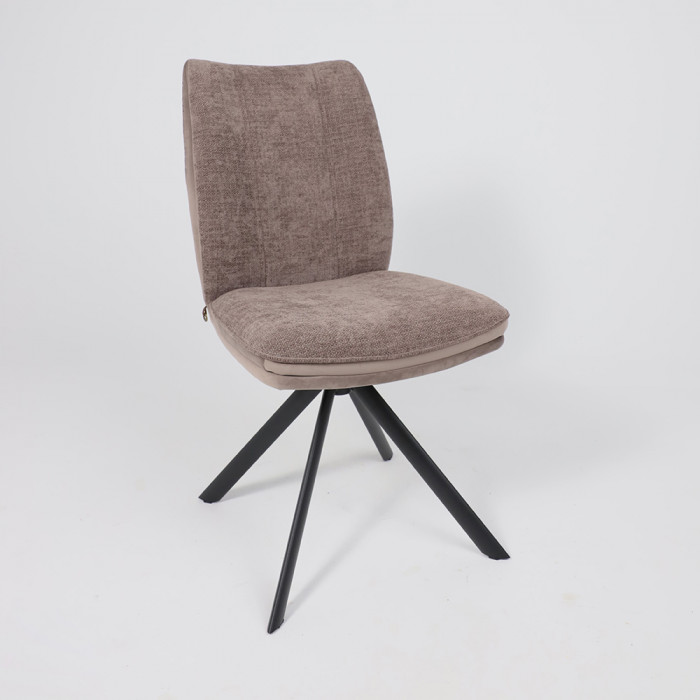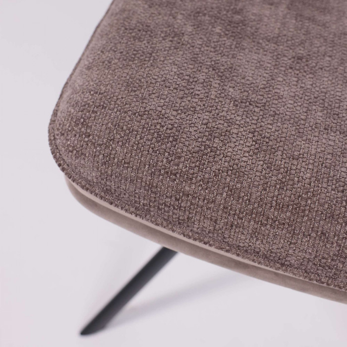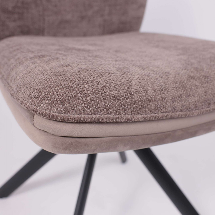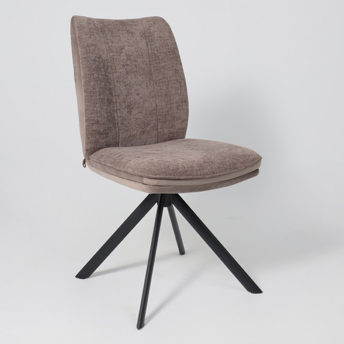 Модель сочетает в себе роскошь двух материалов: нежный велюр контрастирует с практичным шениллом, создавая игру текстур и обеспечивая приятные тактильные ощущения. Глубокий черный цвет металлического каркаса подчеркивает лаконичность дизайна, а отсутствие подлокотников сохраняет визуальную легкость. Но главной особенностью стула является плавный поворотный механизм на 360 градусов, который позволяет легко менять ракурс общения, делая его идеальным решением для кухонных островов и современных столовых-трансформеров.