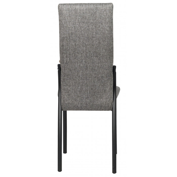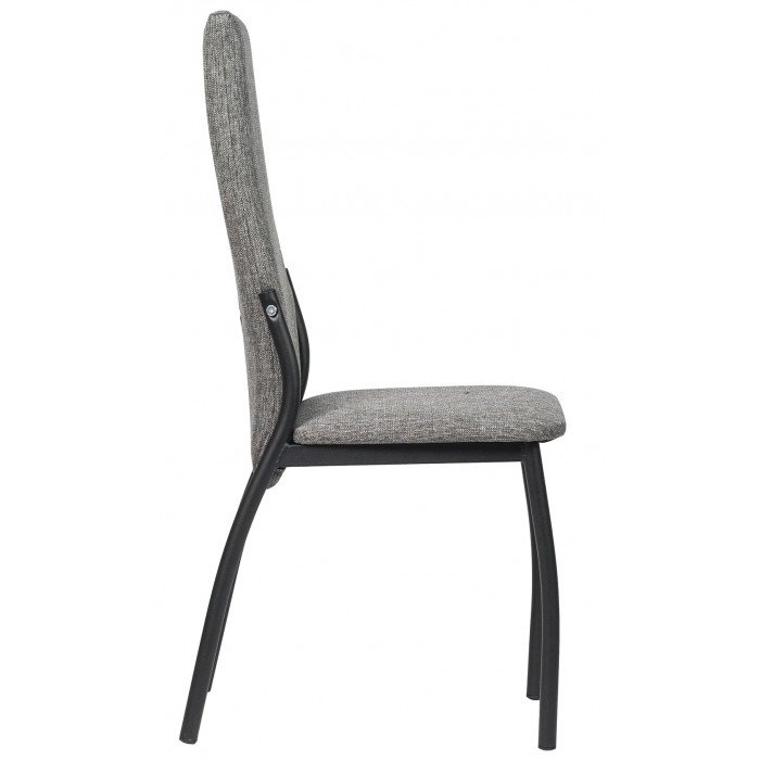 Высокая спинка обеспечивает комфорт и правильную поддержку спины во время обедов или отдыха. Обивка из прочной рогожки придает стулу приятную текстуру и тепло, а металлический каркас добавляет устойчивости и долговечности. Отсутствие подлокотников делает модель компактной и удобной для размещения под столом.