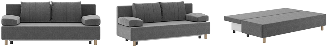 - Не требует отступа от стены — диван можно ставить вплотную к стене или другой мебели