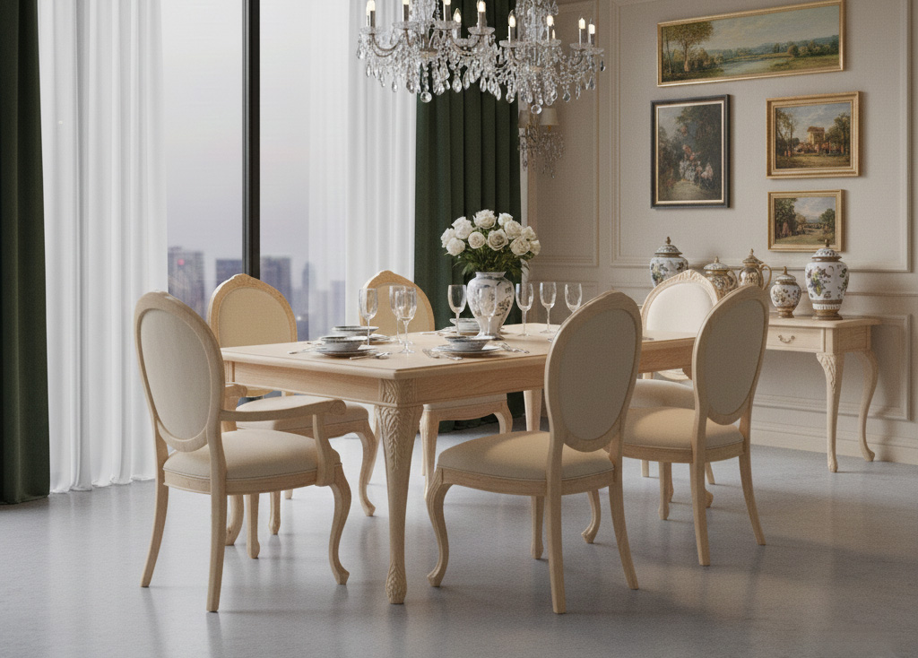 Классические стулья — это выбор для тех, кто ценит основательность, гармонию и традиции. Узнать их можно по плавным изогнутым линиям, резным ножкам и спинкам, а также дорогим материалам. Чаще всего их изготавливают из массива дерева (дуба, бука, ореха) и дополняют мягкими сиденьями, обитыми роскошным текстилем, например, жаккардом или бархатом.