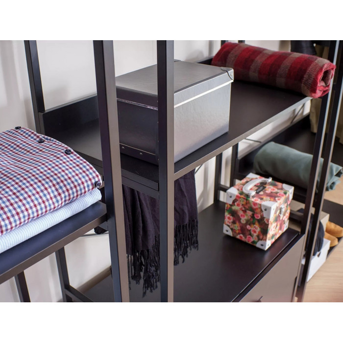 Стеллаж RIN B — это строгий и выразительный акцент для современного интерьера. Он позволяет максимально эффективно использовать вертикальное пространство, делая модель идеальной для хранения большого количества вещей.
