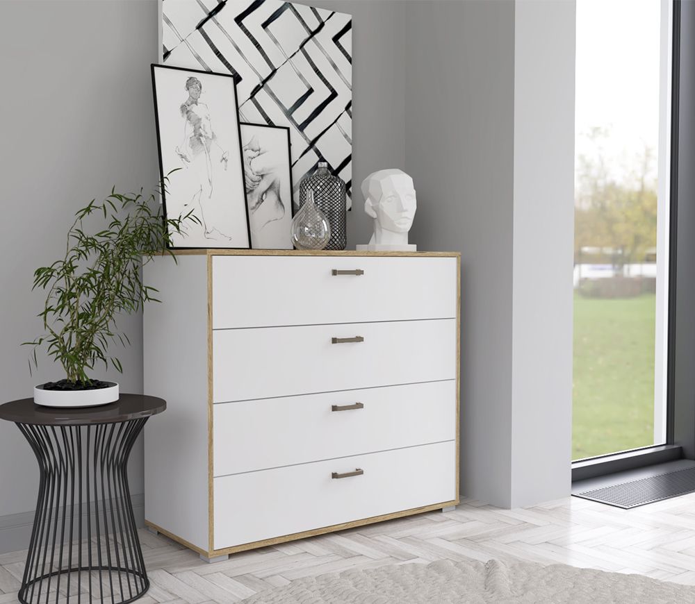 Комод Интерлиния Scandi SC-4Ш белый платинум / дуб золотой купить в Минске