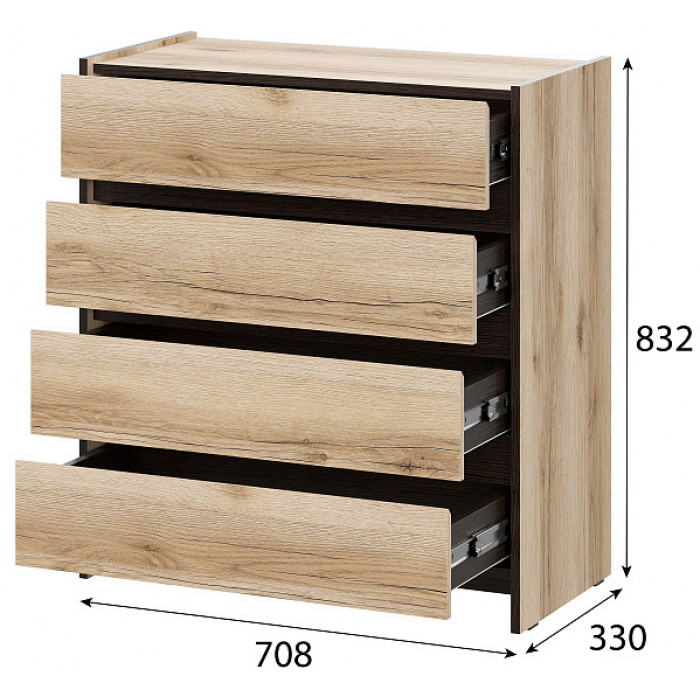Комод SV-мебель (МС Прага К) серия 3 дуб делано/дуб венге (4 ящика) купить в Минске