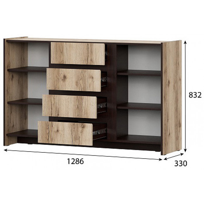 Комод SV-мебель (МС Прага К) серия 3 дуб делано/дуб венге (4 ящика, 2 створки) купить в Минске