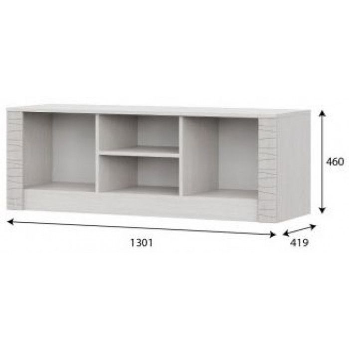 Центральная часть тумбы включает две открытые ниши размером 388х166х400 мм, которые идеально подходят для размещения декоративных элементов, книг или аудиоаппаратуры. Открытые полки добавляют тумбе легкость и визуальную воздушность, делая ее стильным акцентом в интерьере. Цвет «ясень» подчеркивает натуральную текстуру дерева, создавая теплую и уютную атмосферу в вашем доме.