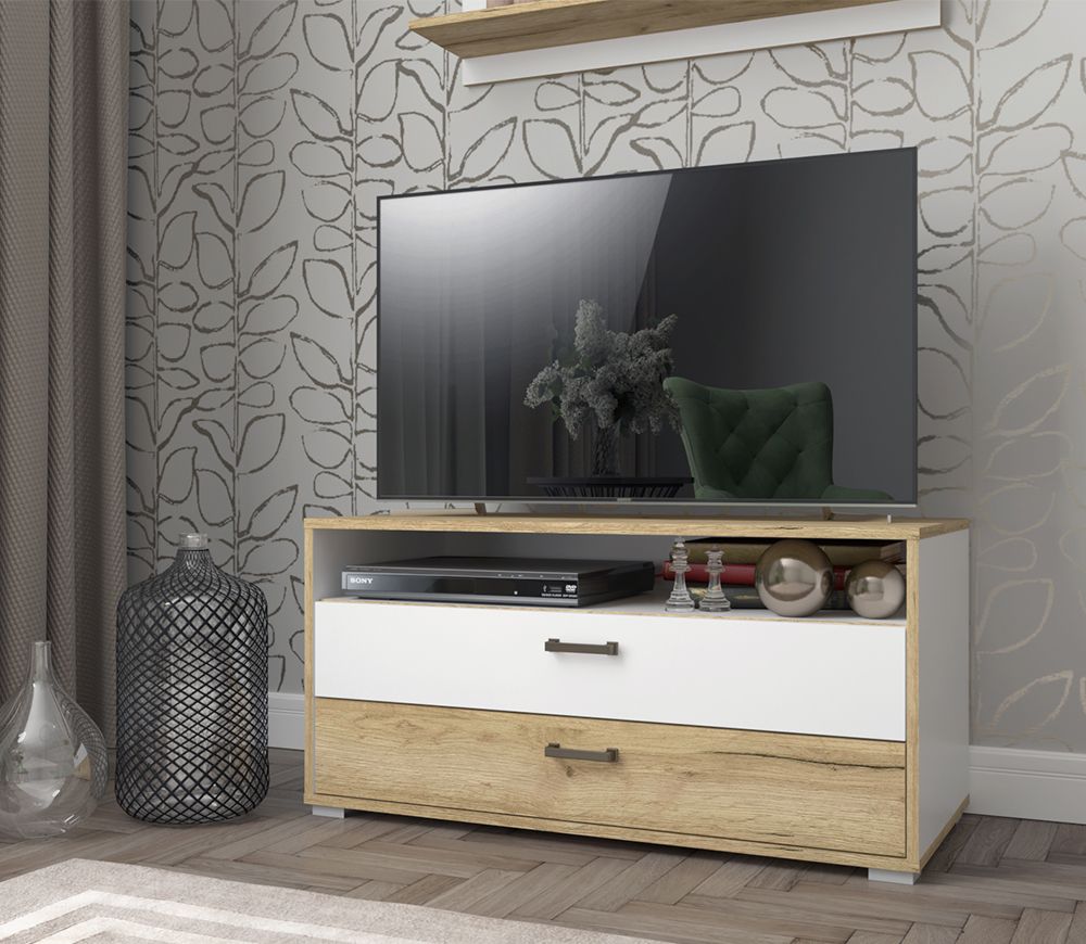 Тумба под телевизор Интерлиния Scandi SC-Т100 белый платинум/дуб золотой купить в Минске