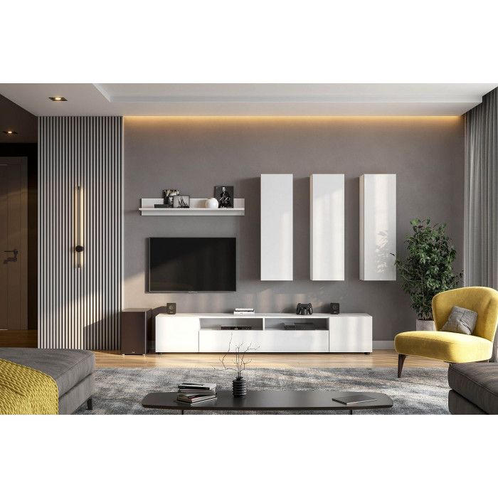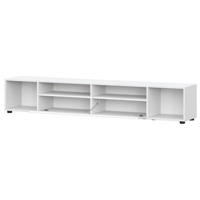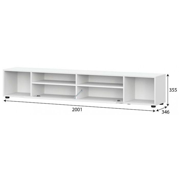 Тумба имеет размеры: 200х34х35 см, что позволит разместить на ней даже крупногабаритный телевизор. Внутреннее пространство разделено на 6 удобных отделений, где можно хранить различные аксессуары, медиаустройства и другие необходимые предметы. Продуманная конструкция обеспечивает эргономичность и максимальную функциональность.