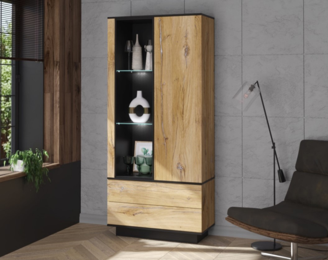 - Шкаф Интерлиния Quartz QZ-ШК1 90*39,6*200 (с подсветкой) дуб нокс/черный купить в Минске