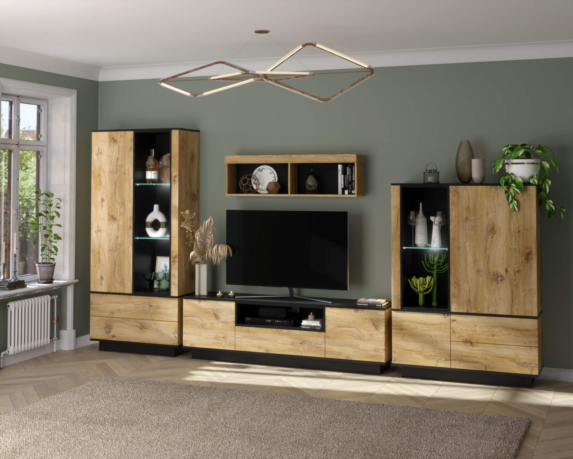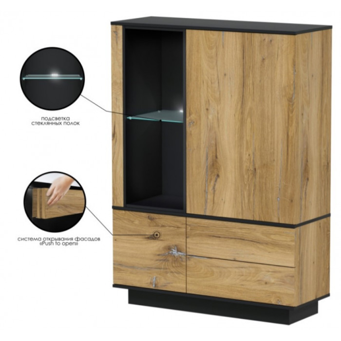 - Шкаф Интерлиния Quartz QZ-ШК2 110*39,6*54,1 (с подсветкой) дуб нокс/черный купить в Минске