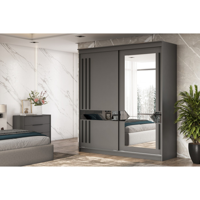 Шкаф-купе NN Мебель К №25 (2,0 м) Блэк ЛАЙТ графит серый / лакобель / черный матовый купить в Минске