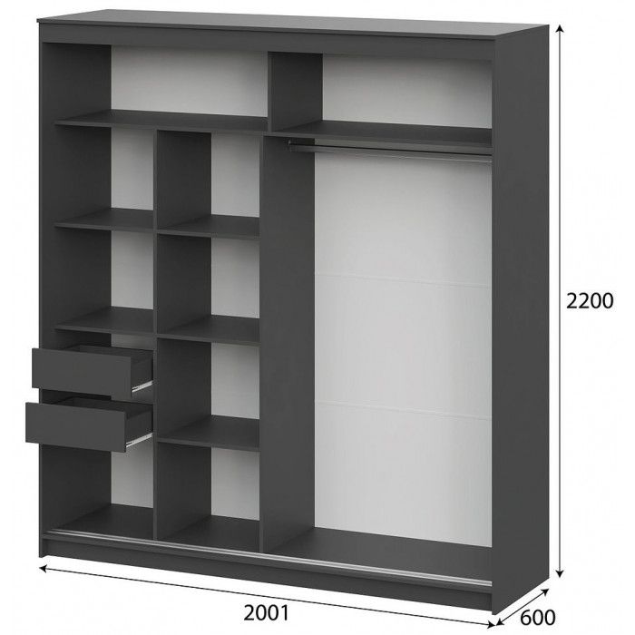 Шкаф-купе NN Мебель К ШКП-3 (2,0) МАКС Графит серый купить в Минске