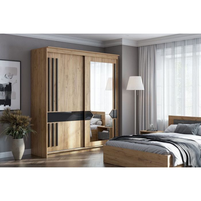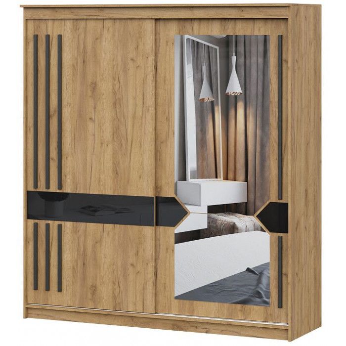 Шкаф-купе SV-МЕБЕЛЬ К №25 (2,0 м) Блэк Дуб Золотой/Лакобель/Черный матовый купить в Минске