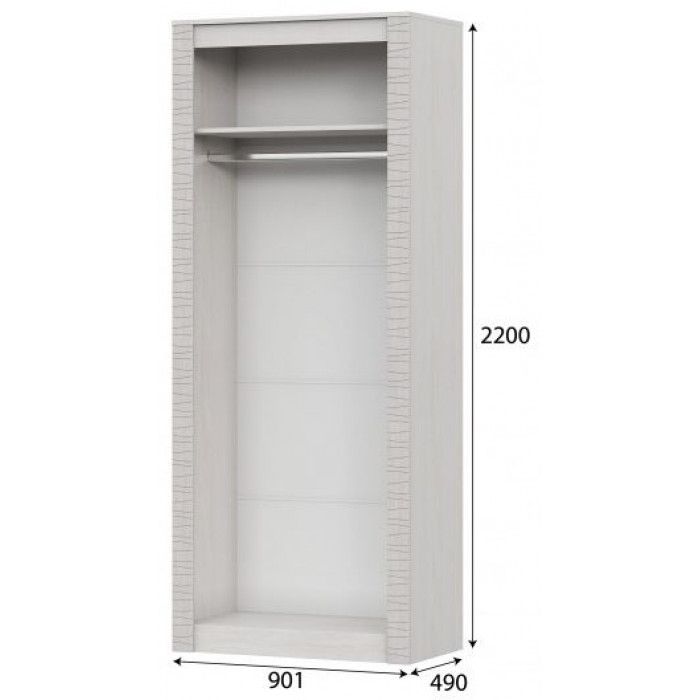 В комплектацию входят несъемная верхняя полка, идеально подходящая для размещения объемных предметов, и металлическая штанга для удобного хранения одежды на плечиках. Шкаф станет отличным выбором для спальни, прихожей или гардеробной, сочетая в себе практичность и стиль.