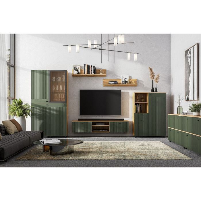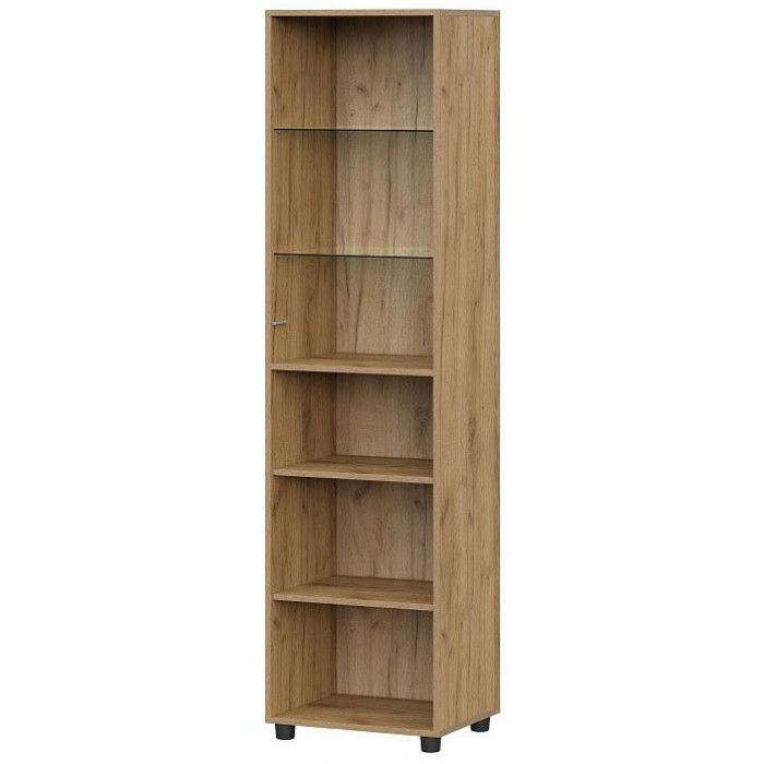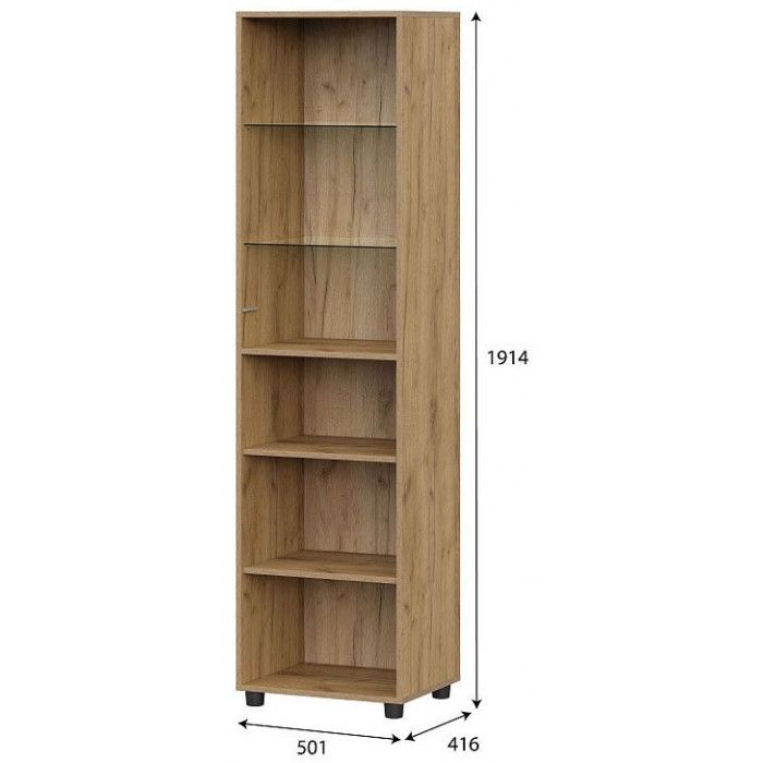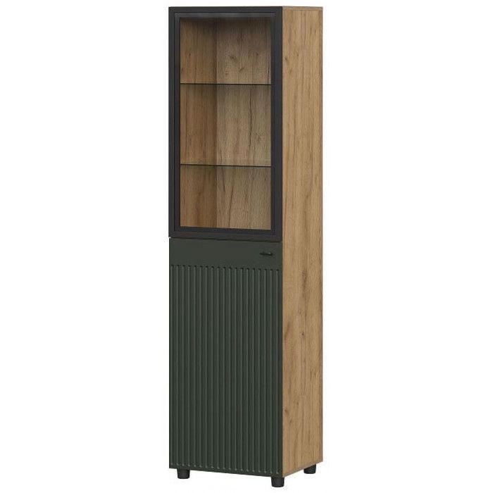 Компактная ширина – всего 50 см – позволяет разместить шкаф даже в небольших помещениях, не жертвуя при этом стилем и удобством. Верхняя часть шкафа оформлена стеклянной дверцей, что придает ему легкость и визуальную воздушность, а также позволяет демонстрировать содержимое, будь то книги, декоративные элементы или посуда.