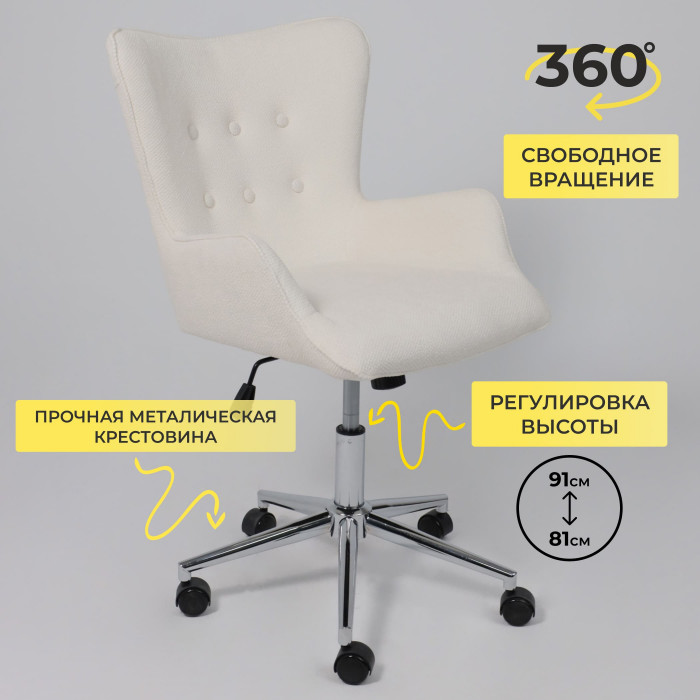 Кресло AksHome Bella представляет собой интересное и уникальное кресло с дизайнерскими деталями, такими как пуговицы на рабочей поверхности спинки, обитые той же тканью, что и само кресло.