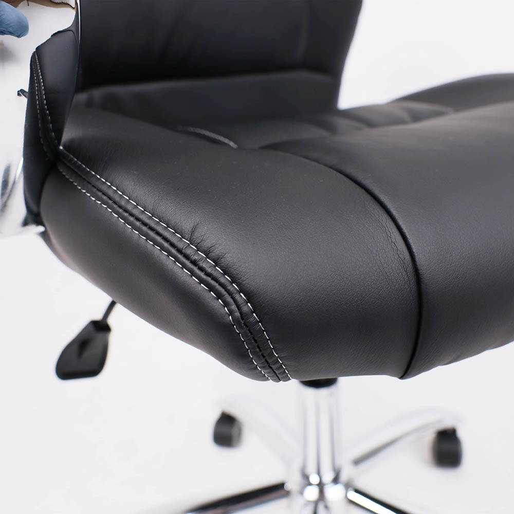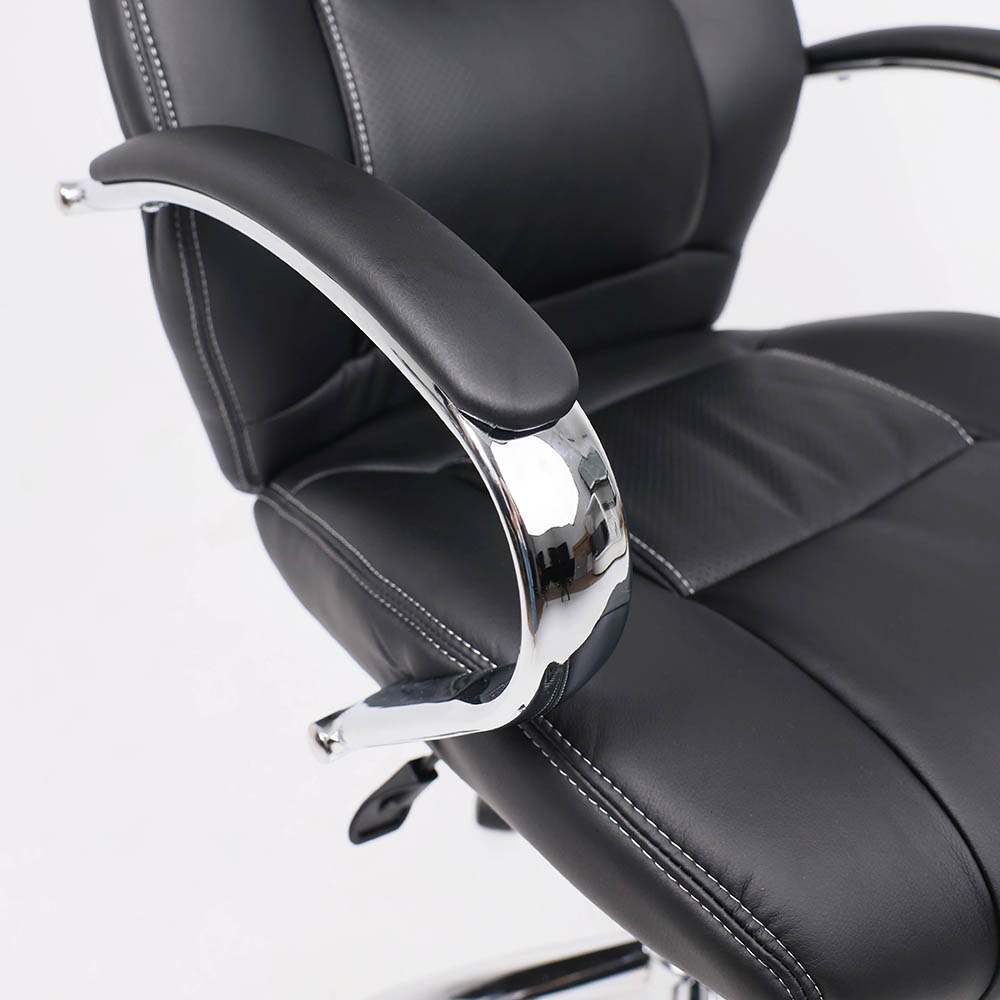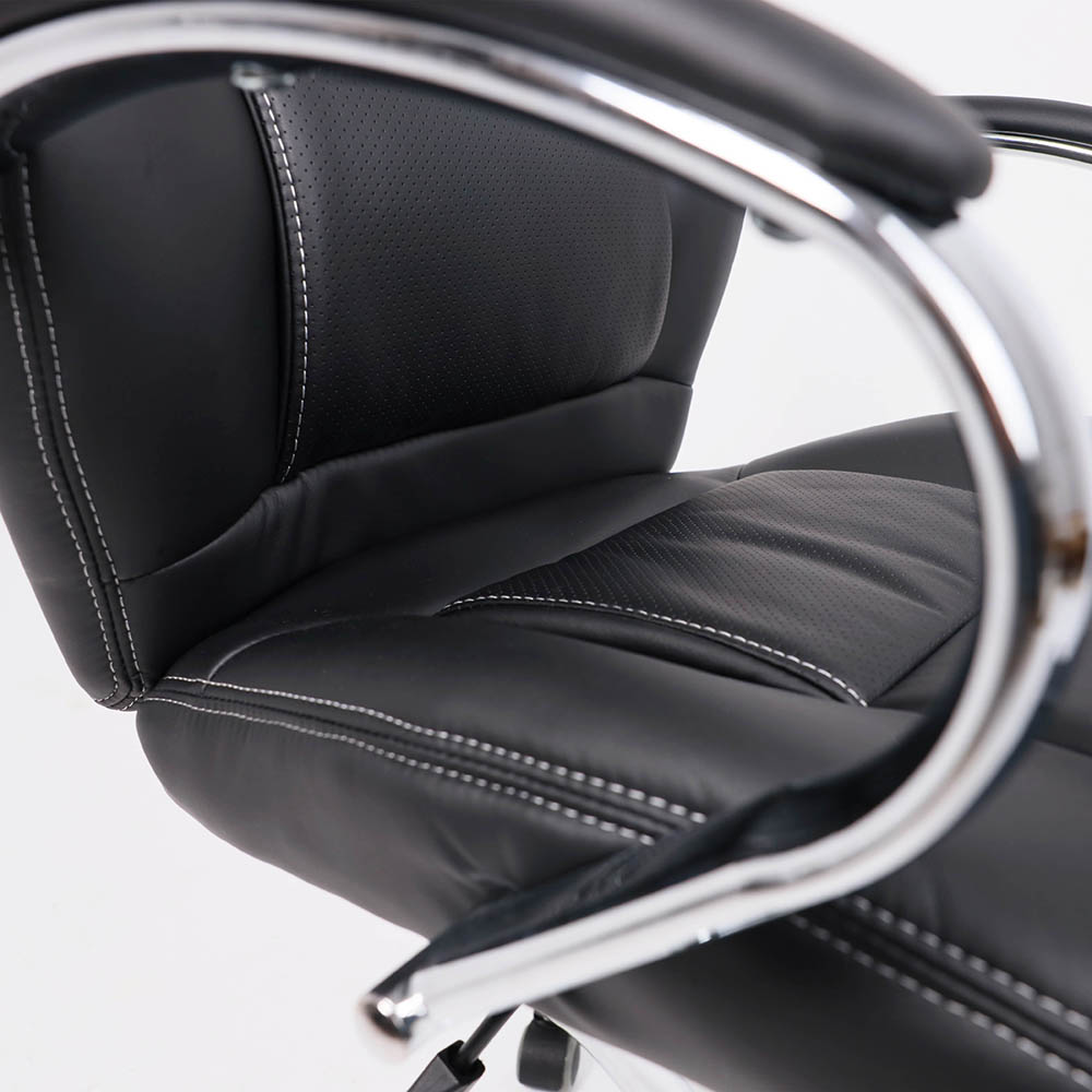 Материал обивки - высококачественная экокожа, которая не только придает креслу элегантный внешний вид, но также обеспечивает долгий срок службы. Черный цвет обивки придает креслу сдержанный и стильный вид, что сочетается с большинством интерьеров офисных помещений.