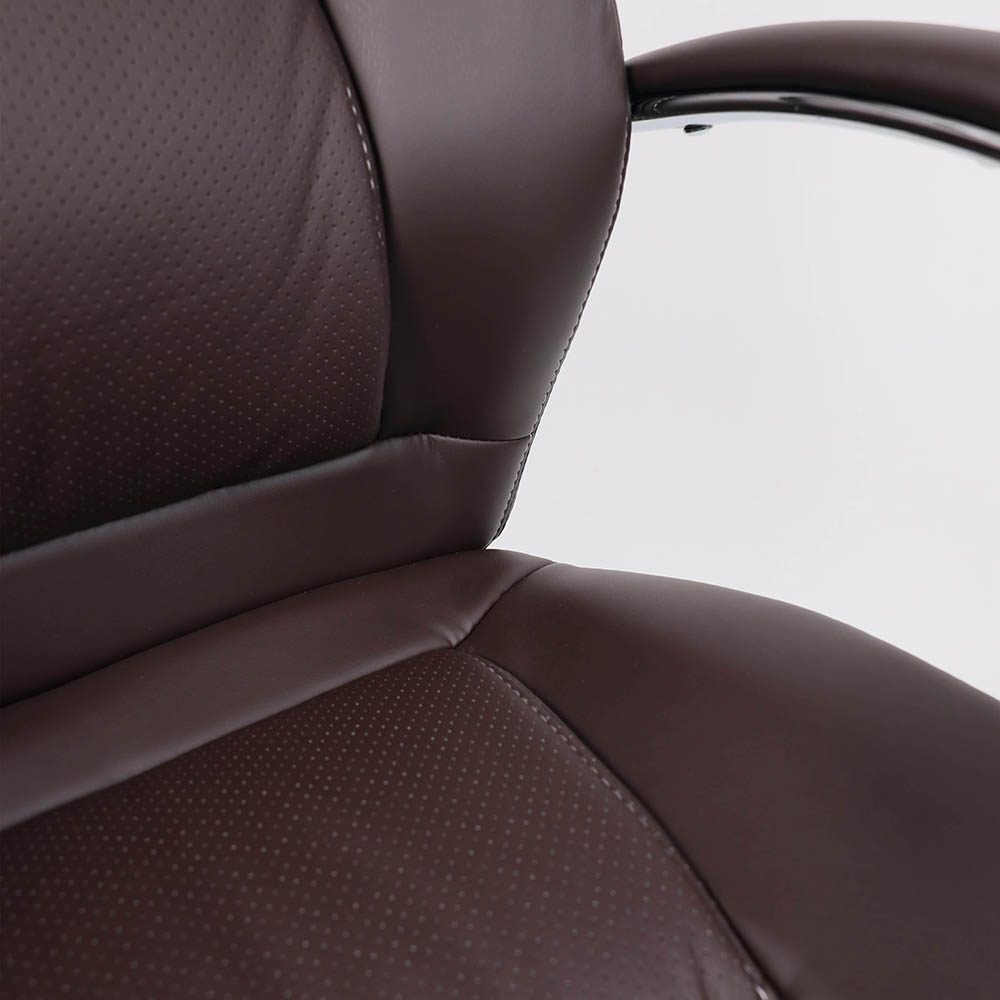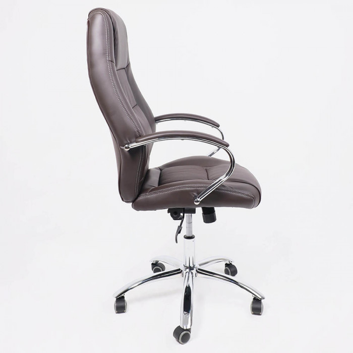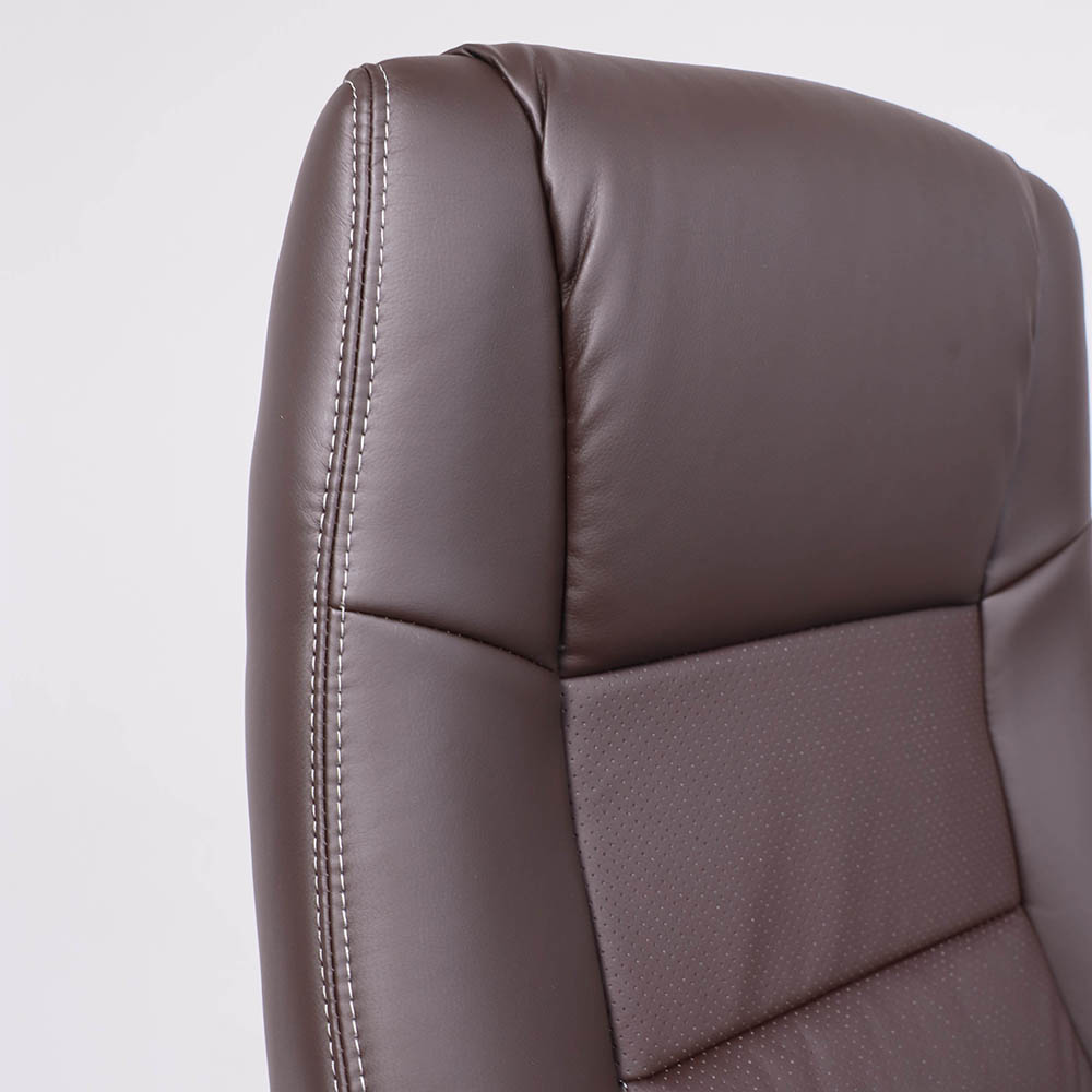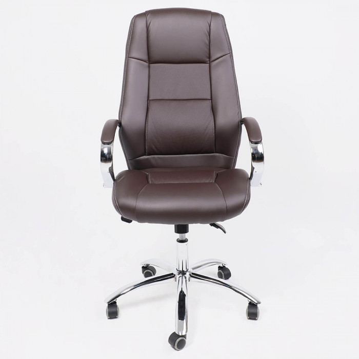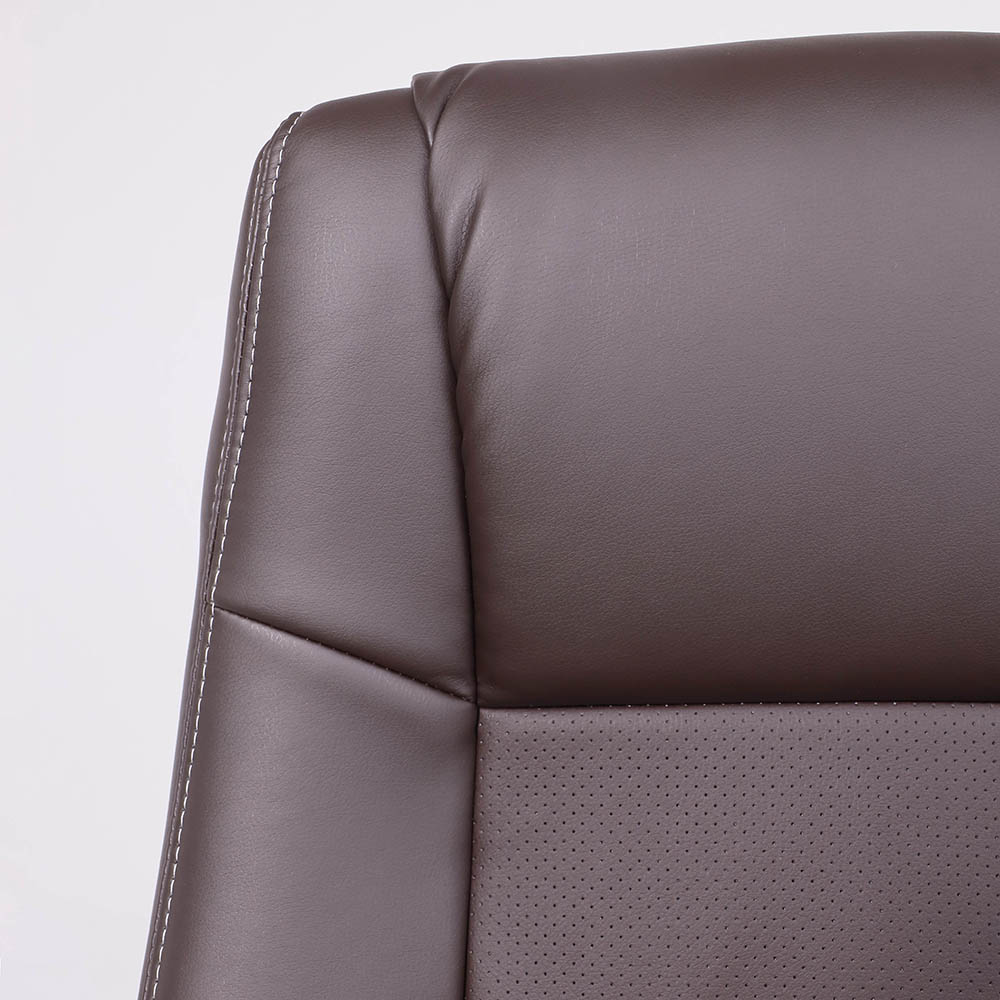 Материал обивки - высококачественная экокожа, которая не только придает креслу элегантный внешний вид, но также обеспечивает долгий срок службы. Коричневый цвет обивки придает креслу сдержанный и стильный вид, что сочетается с большинством интерьеров офисных помещений.