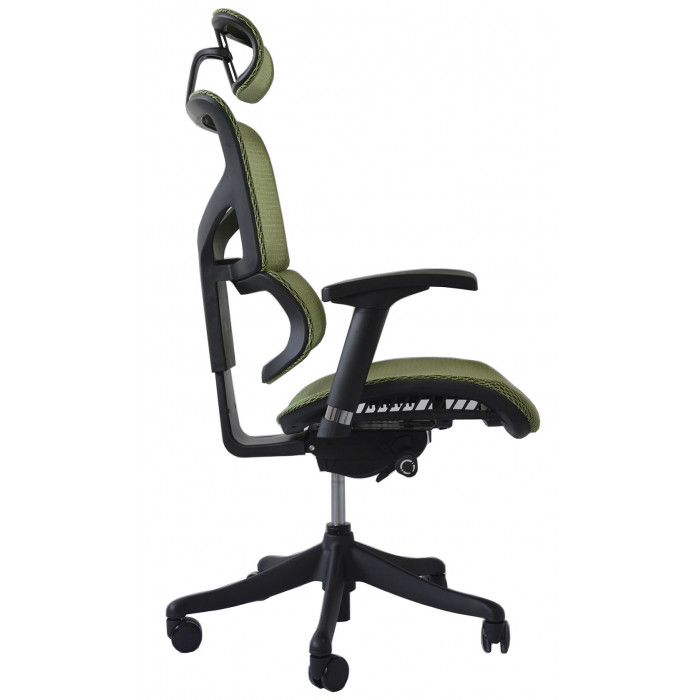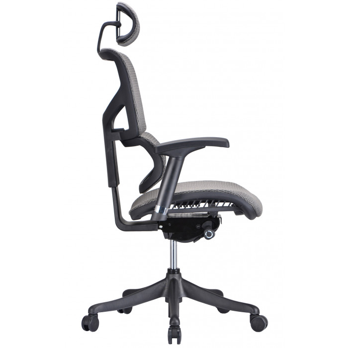 Кресло имеет широкий подголовник с режимом регулировки угла наклона и высоты.