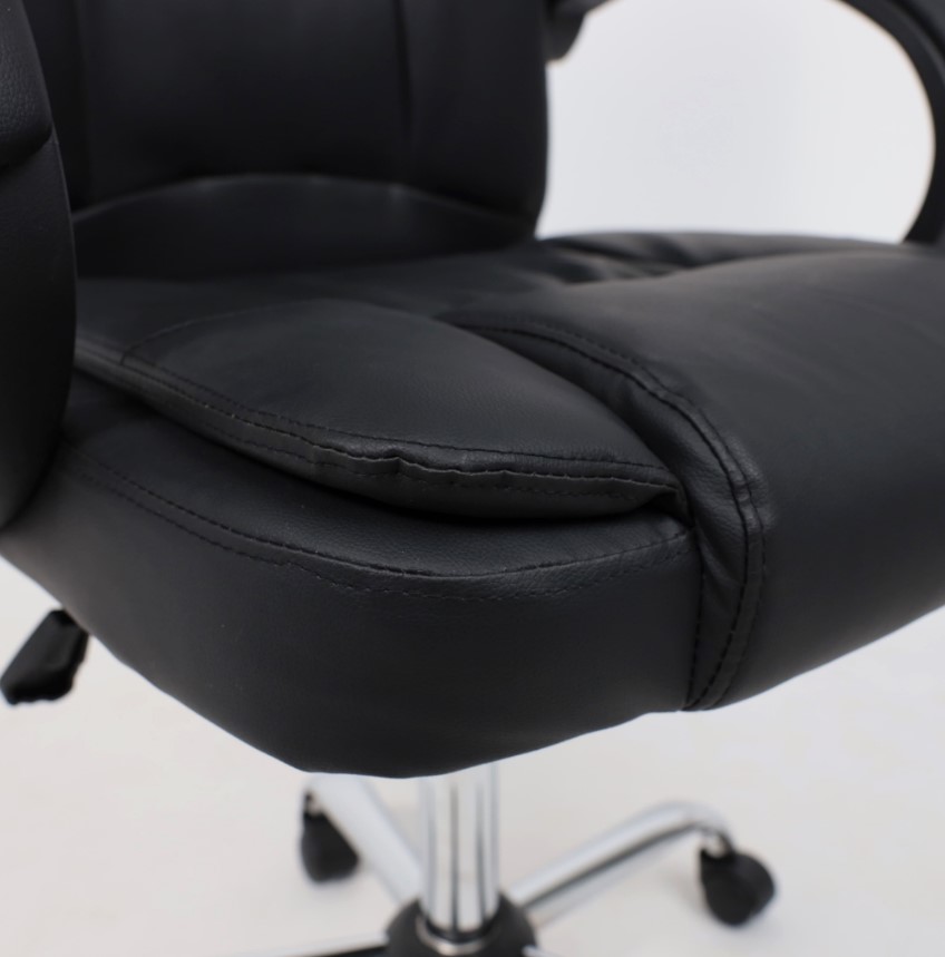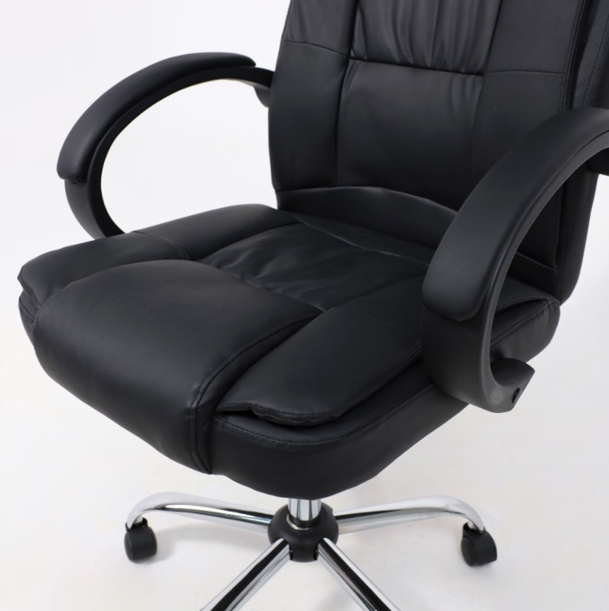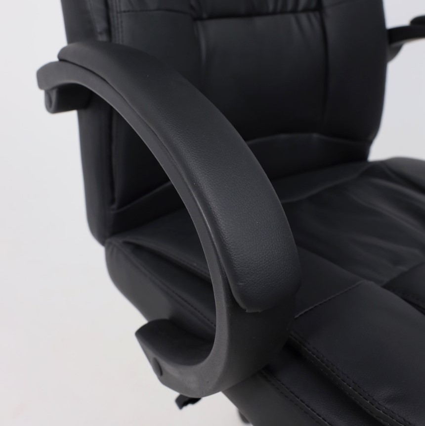 Материал обивки - высококачественная экокожа, которая не только придает креслу элегантный внешний вид, но также обеспечивает долгий срок службы. Черный цвет обивки придает креслу сдержанный и стильный вид, что сочетается с большинством интерьеров офисных помещений.