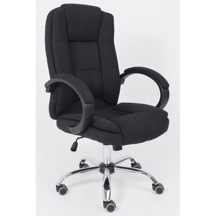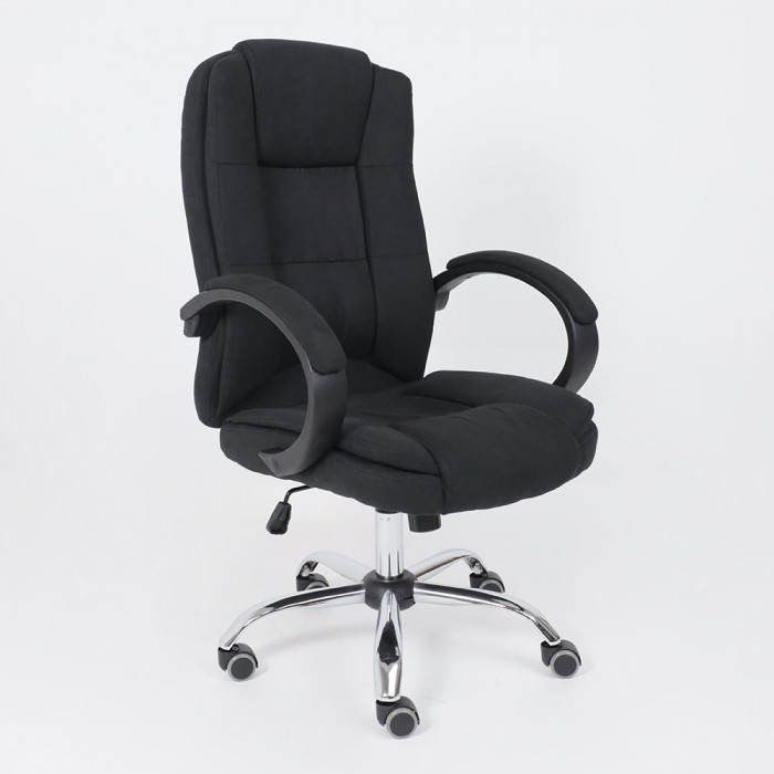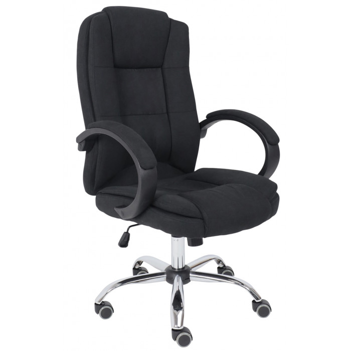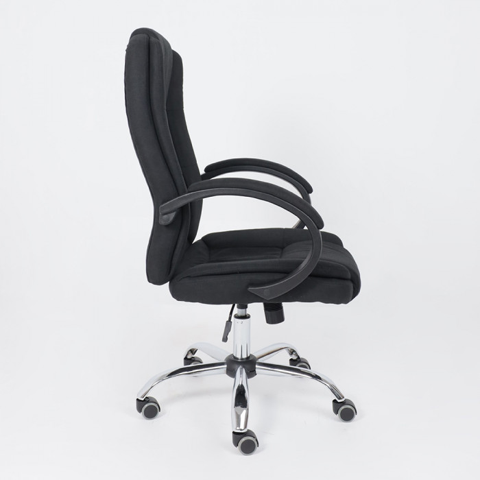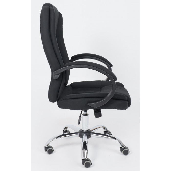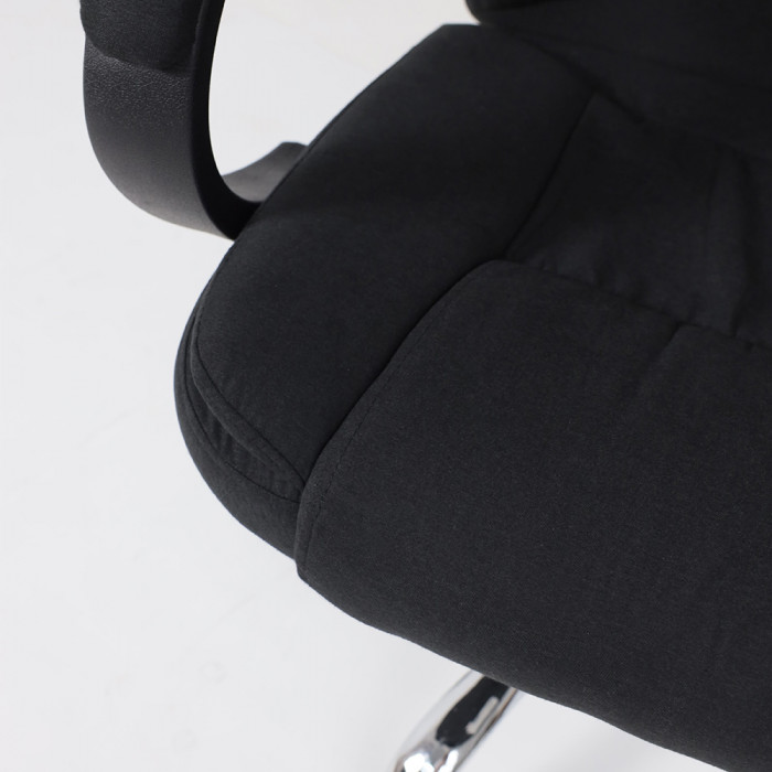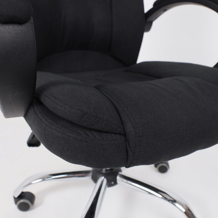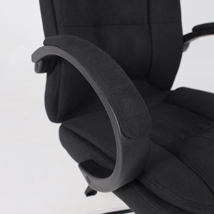 Материал обивки - высококачественная ткань. Черный цвет обивки придает креслу сдержанный и стильный вид, что сочетается с большинством интерьеров офисных помещений.