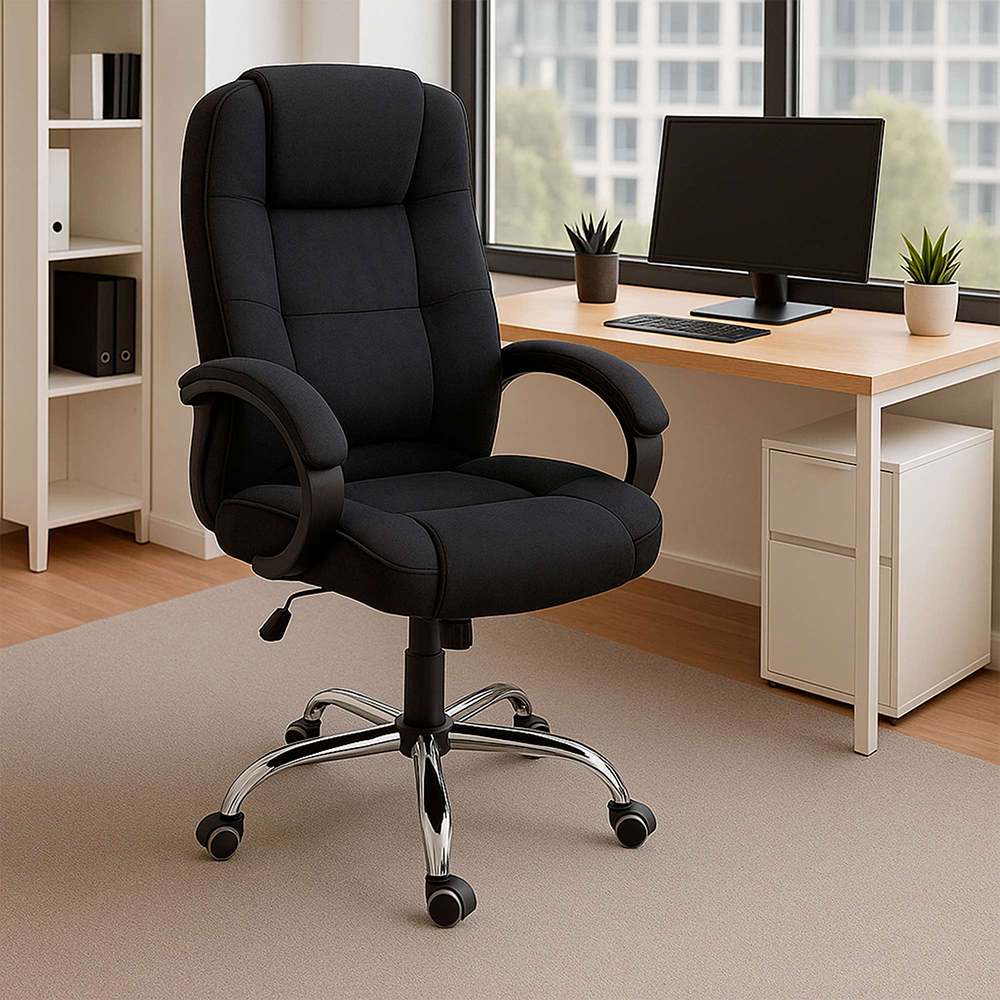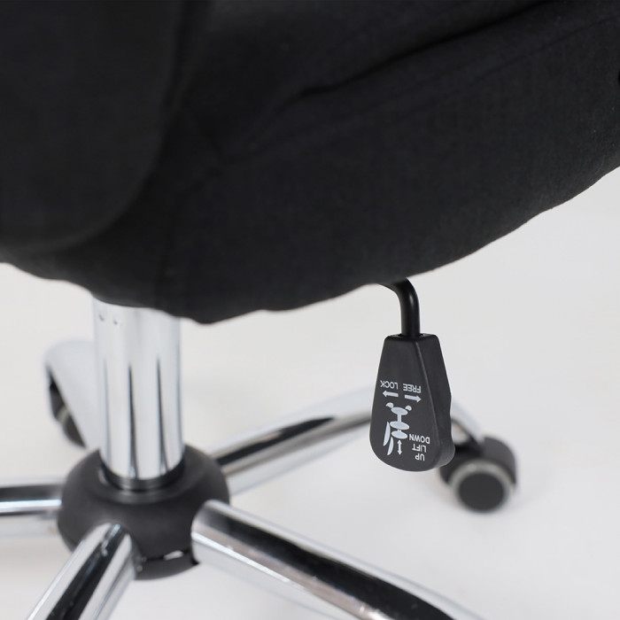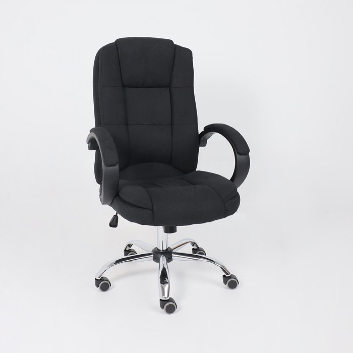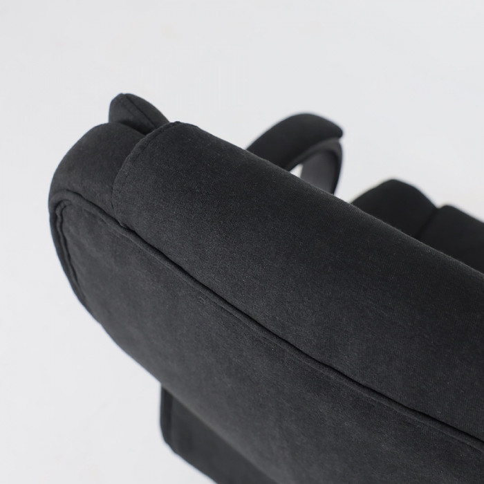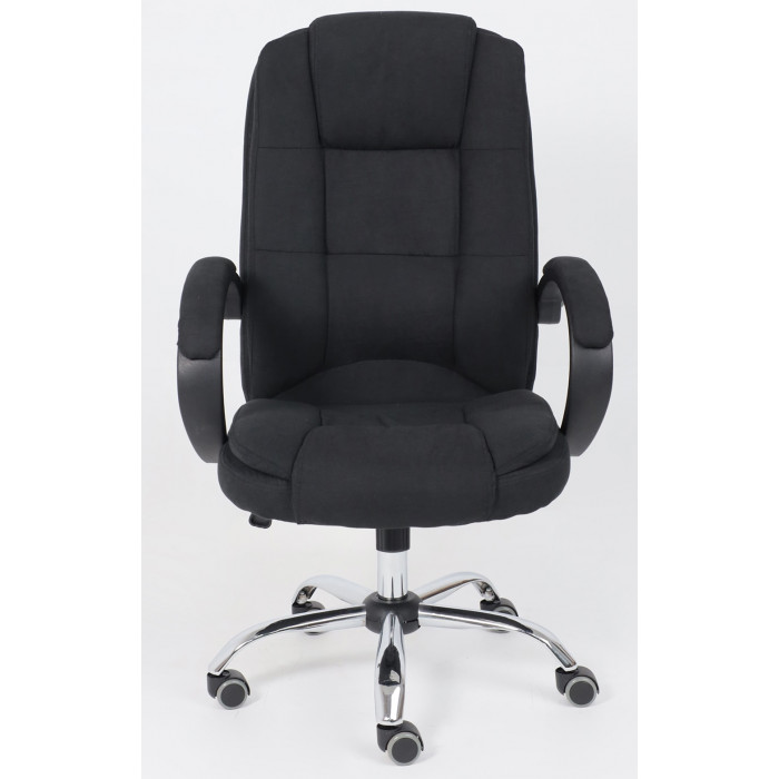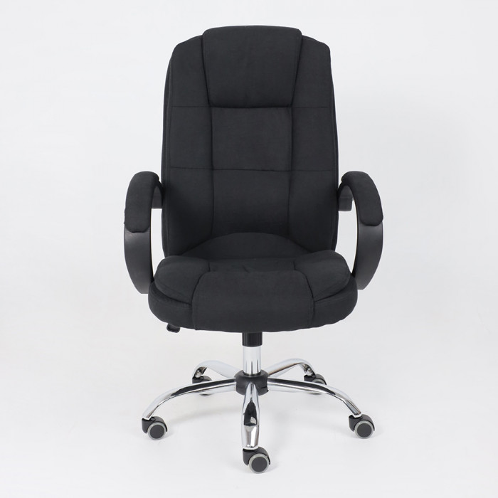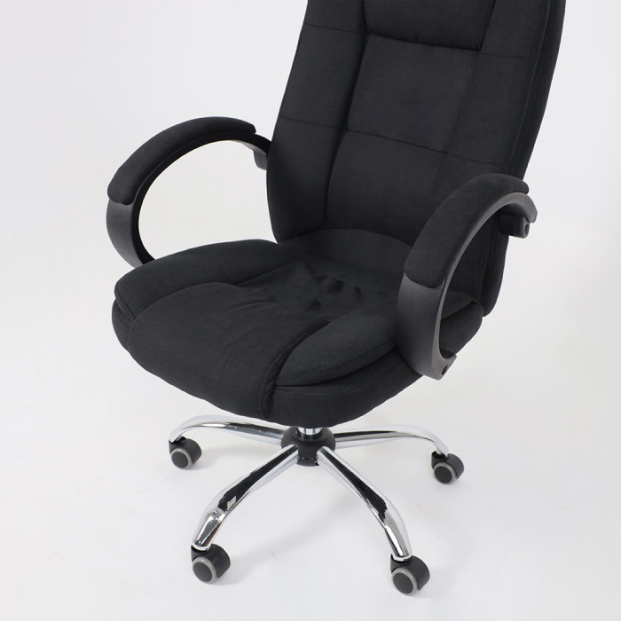 Материал обивки - высококачественная ткань. Черный цвет обивки придает креслу сдержанный и стильный вид, что сочетается с большинством интерьеров офисных помещений.