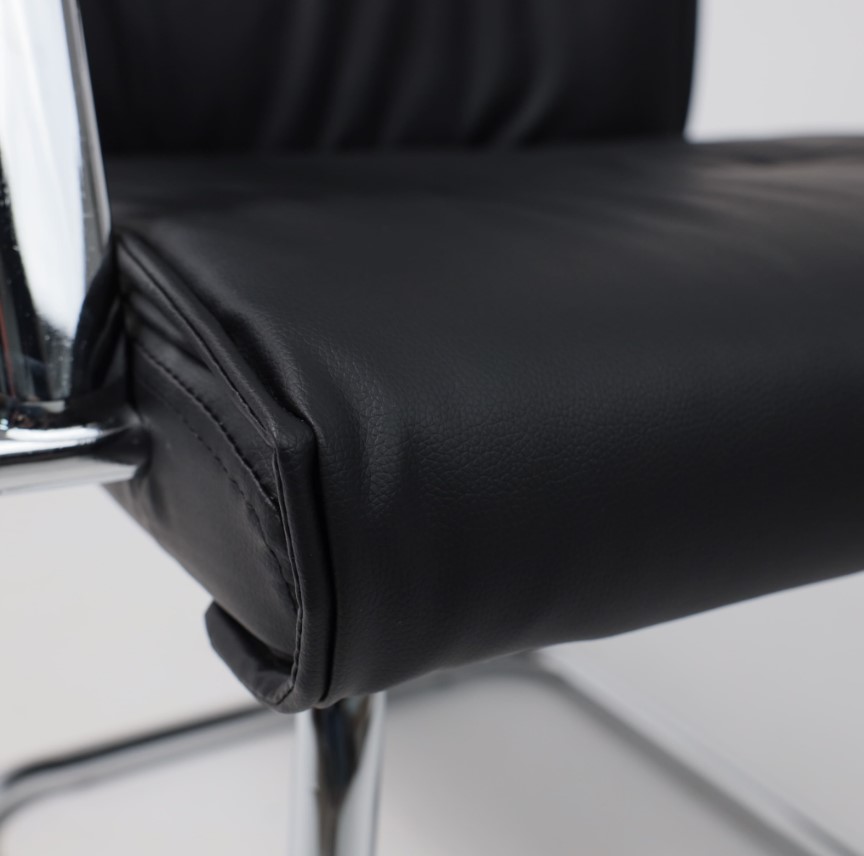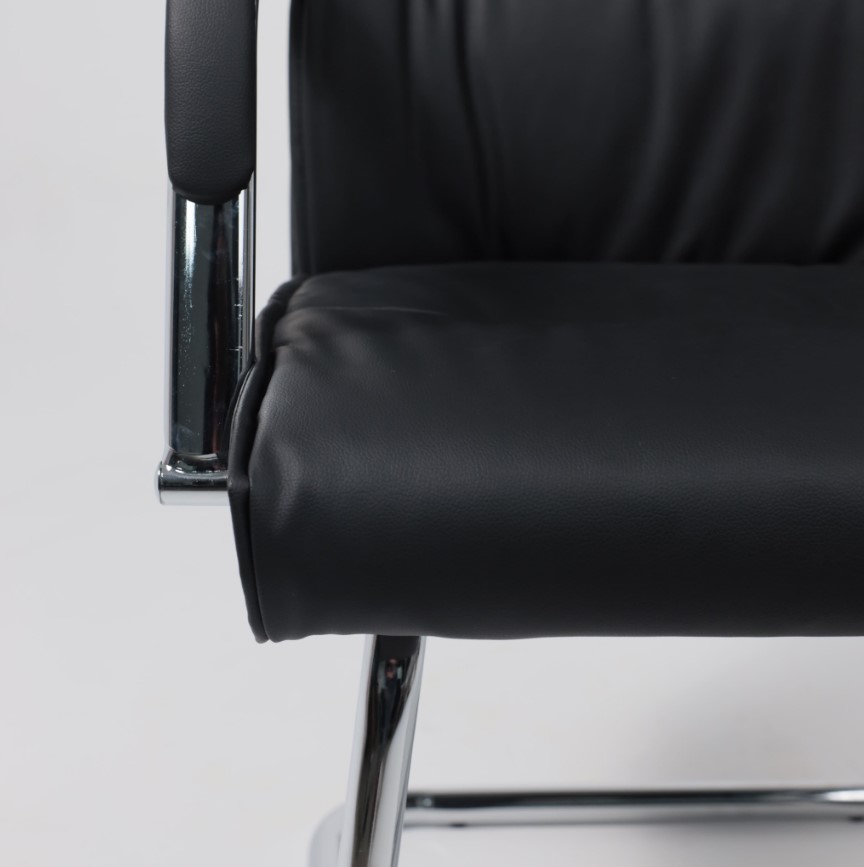 Кресло офисное AKSHOME FACTOR — элегантный офисный стул. Невысокая спинка и комфортное сиденье обтянуты экокожей. Прочный каркас выполнен из хромированного металла. Металлические хромированные подлокотники снабжены накладками.