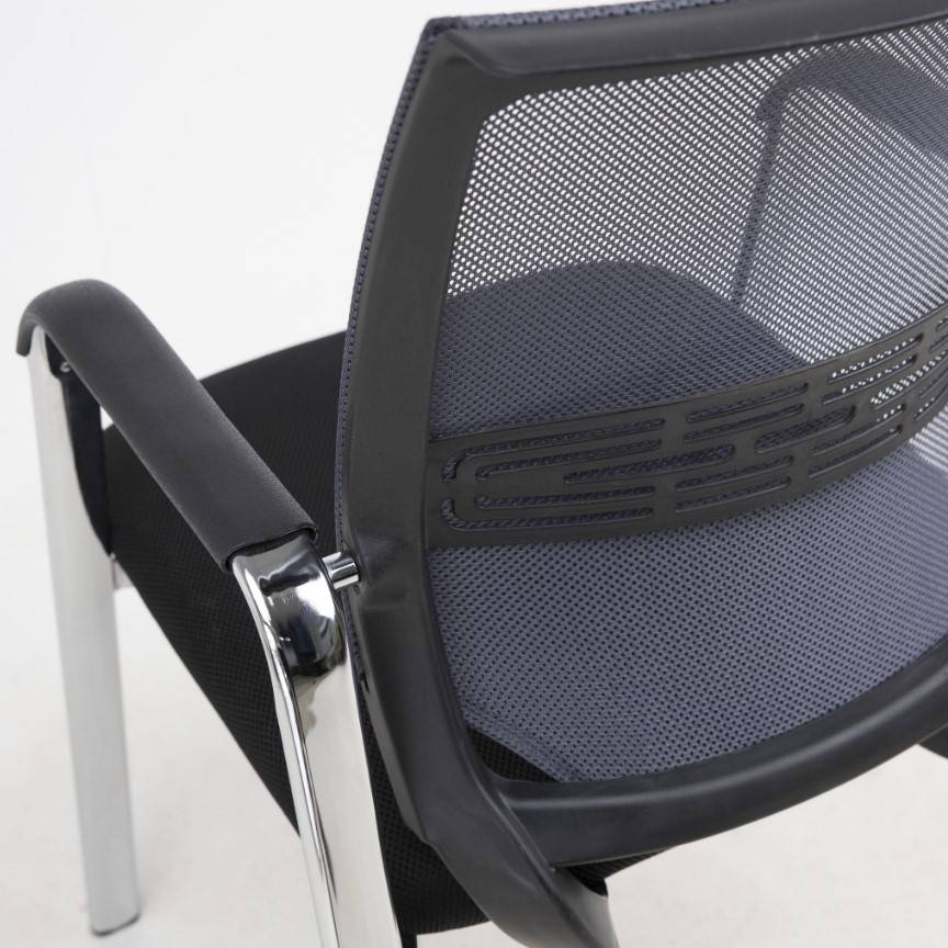 Каркас выполнен из металла, который отличается своей прочностью и надежностью. Спинка стула имеет достаточную высоту, чтобы можно было с комфортом разместиться в нем на длительный промежуток времени. Универсальная расцветка отлично впишется в любой современный интерьер. Подлокотники облегчат процесс посадки и вставания, а также позволят снять нагрузку с рук и плеч во время отдыха и работы.