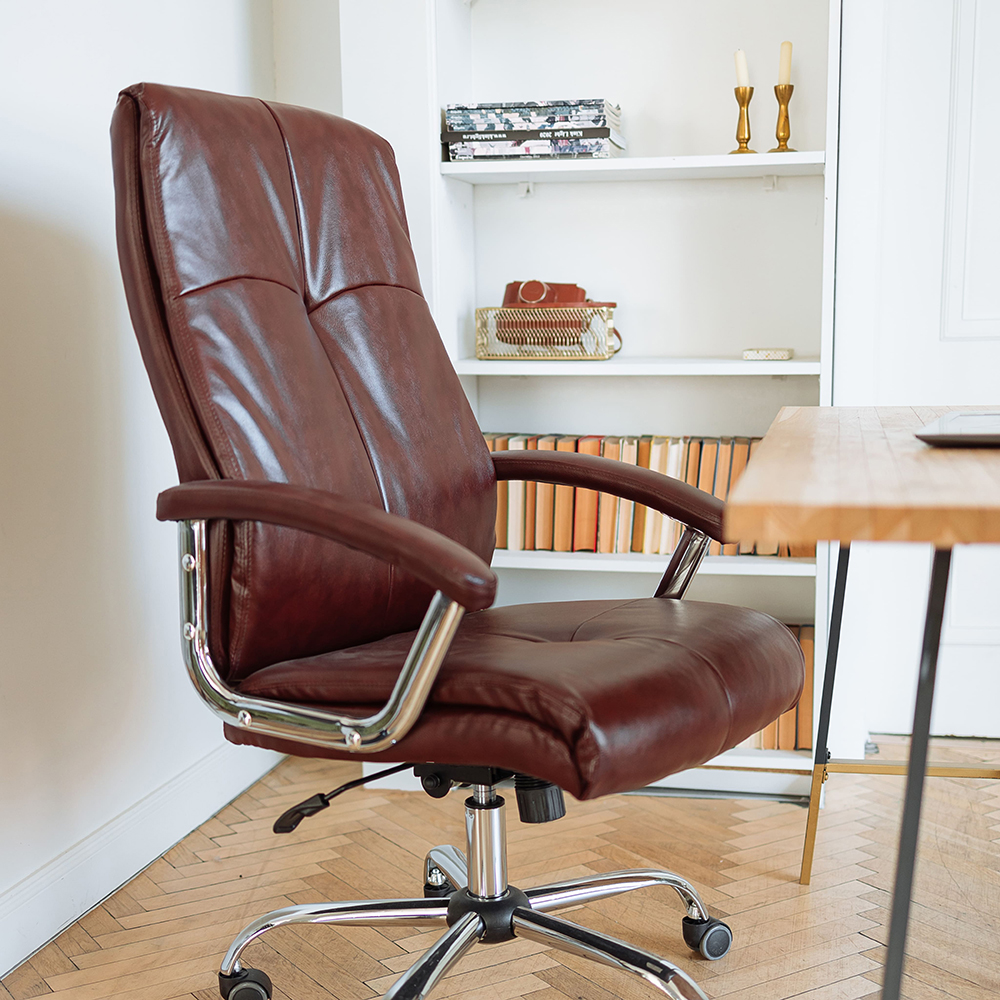 Кресло компьютерное AKSHOME Marsel — мягкое офисное кресло для руководителя. Сиденье и спинка обтянуты экокожей; материал презентабельно смотрится и приятен на ощупь.
