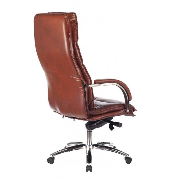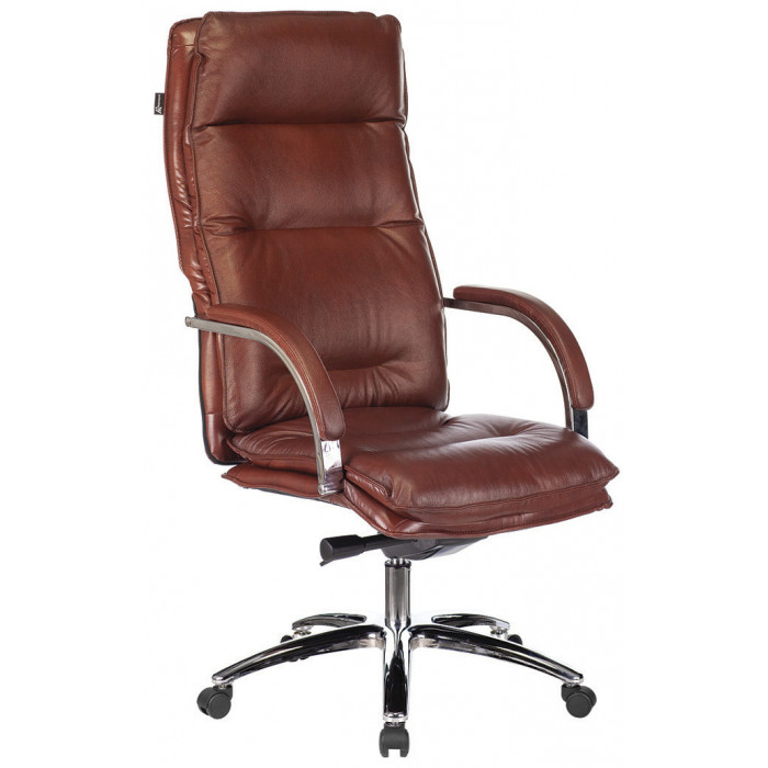 Спинка и сиденье выполнены из натуральной кожи. Такой материал удобен в эксплуатации, благодаря прочности, износостойкости и грязеотталкивающим свойствам. Подлокотники облегчат процесс посадки и вставания, а также позволят снять нагрузку с рук и плеч во время отдыха и работы.