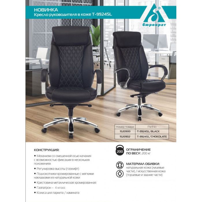 Представительный дизайн, сочетающийся с хорошей поддержкой спины, умеренная цена для кресел такого класса и допустимая нагрузка в 200 кг делают эту модель весьма привлекательной для приобретения.