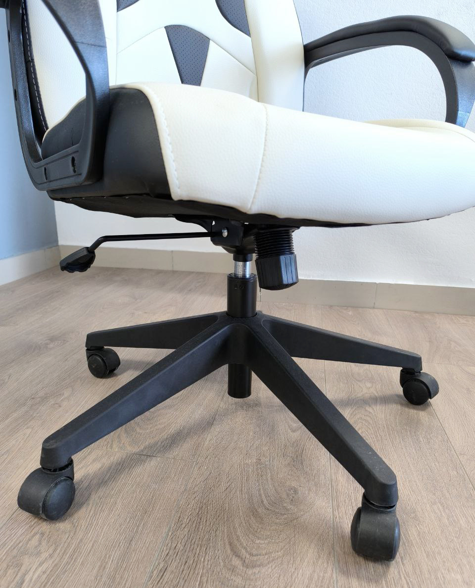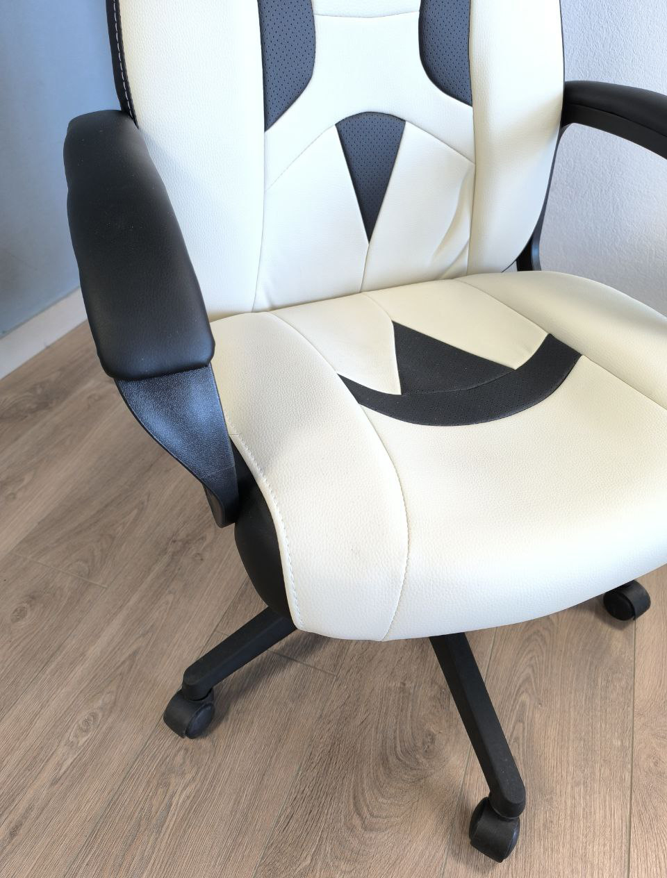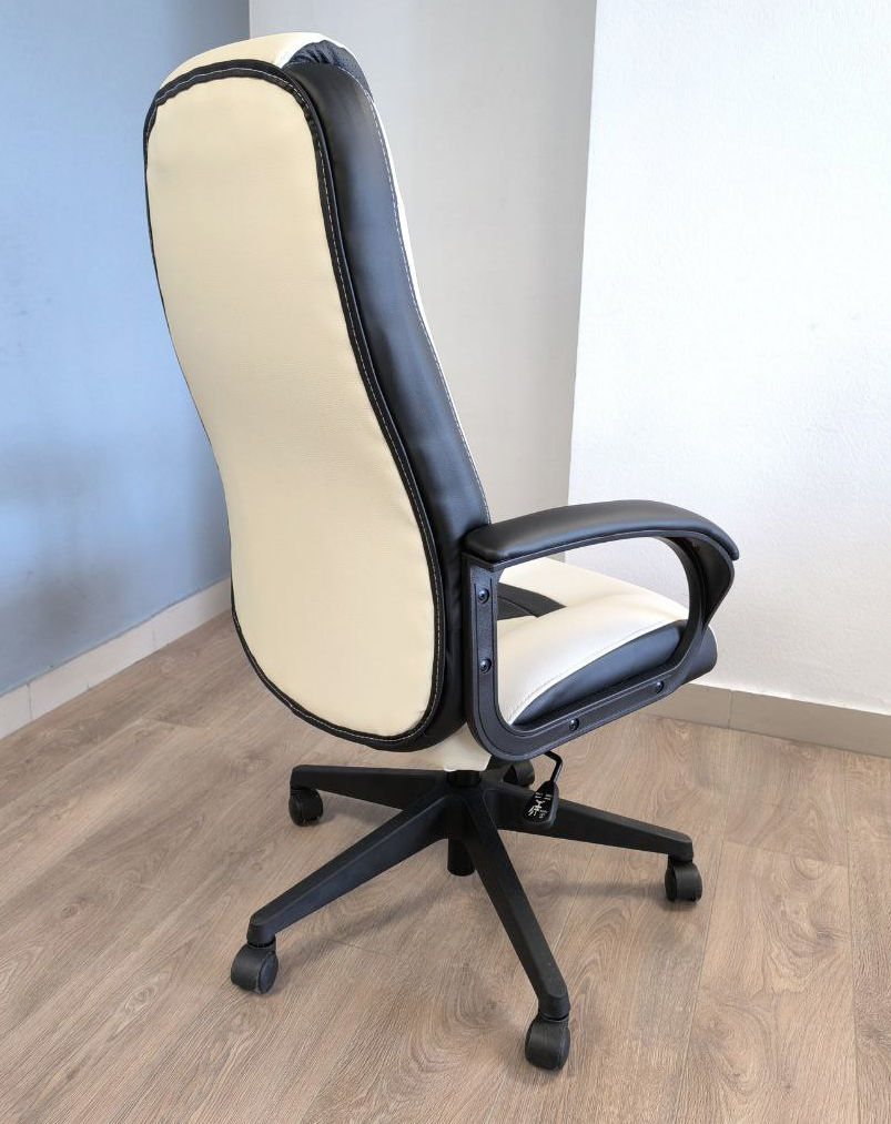 Спинка и сиденье выполнены из ткани со вставками из искусственной кожи. Такой материал удобен в эксплуатации, благодаря прочности, износостойкости и грязеотталкивающим свойствам. Для регулировки высоты сиденья предусмотрена ручка в нижней части кресла. Подлокотники облегчат процесс посадки и вставания, а также позволят снять нагрузку с рук и плеч во время отдыха и работы. Колесики позволят комфортно перемещать кресло с места на место.