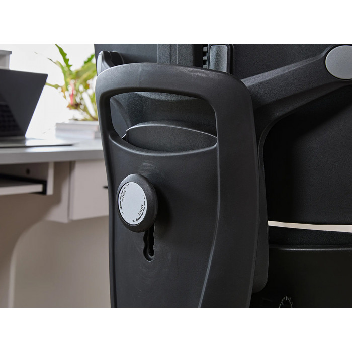 Спинка кресла регулируется по высоте, что позволяет настроить её под любой рост. Адаптивная поясничная поддержка помогает сохранить естественное положение позвоночника, уменьшая нагрузку на спину.
