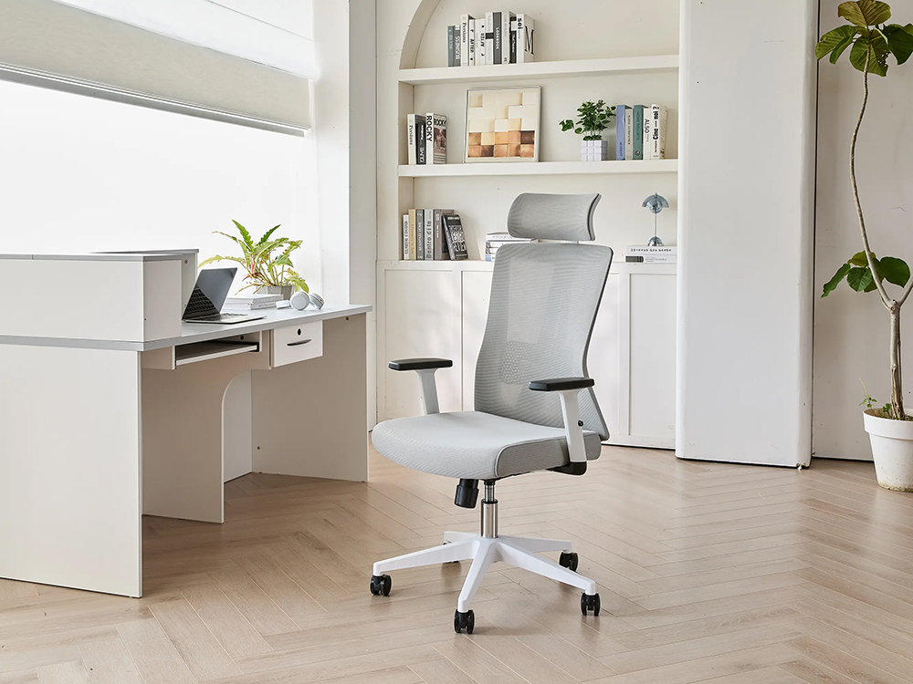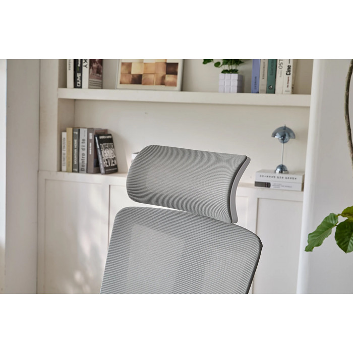 Сетчатый подголовник с регулировкой по высоте и углу наклона поддерживает шею и голову, предотвращая напряжение от длительного сидения.