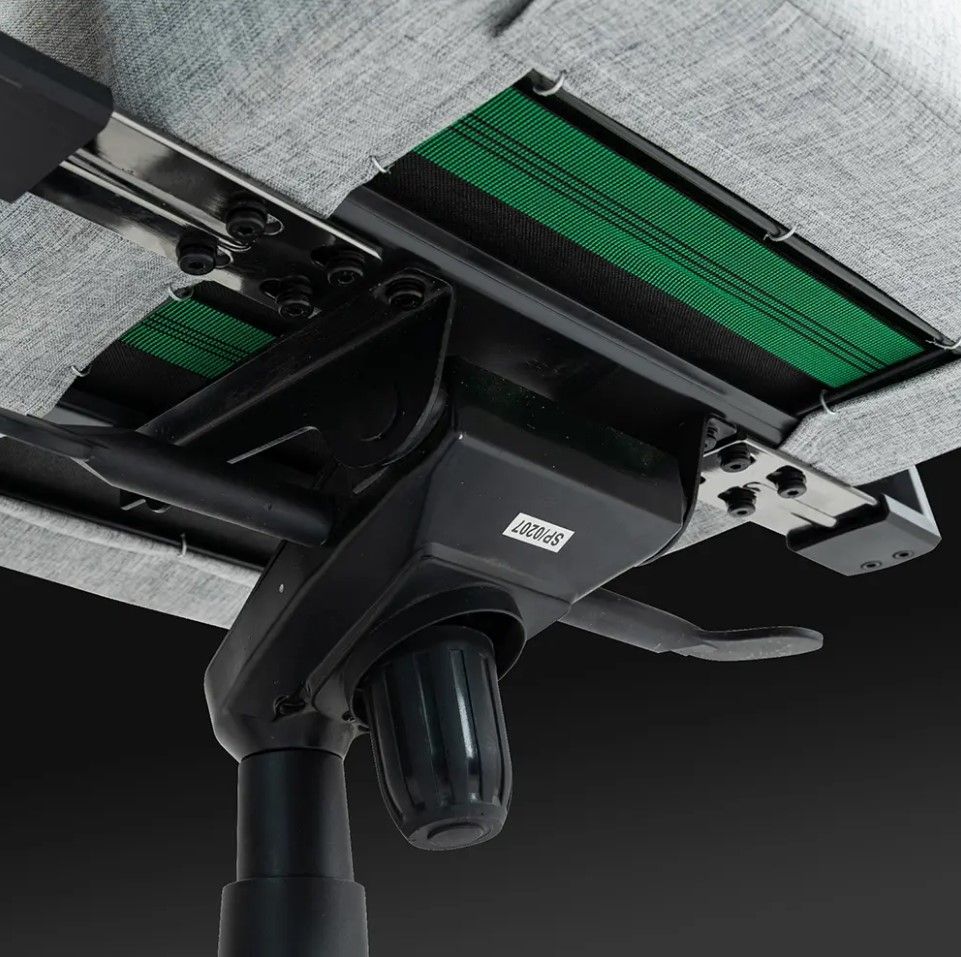 Материал покрытия из ткани обладает высокой устойчивостью к выцветанию, истиранию и растяжению, что обеспечивает долгий срок службы кресла. Анатомическое сиденье без боковых ограничителей способствует комфортному сидению в течение длительных игровых сессий. Под сиденьем расположены резинотканевые ремни с усиленным ребром жесткости, обеспечивающие дополнительную поддержку и комфорт.