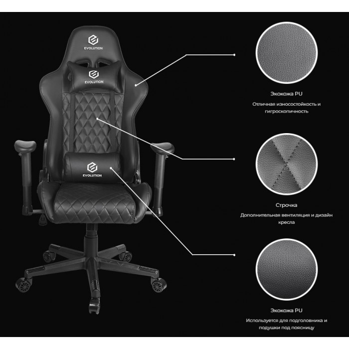 EVOLUTION TACTIC 1 - это геймерское кресло, созданное с учетом комфорта и функциональности для геймеров. Оно обладает высоким качеством и эргономичным дизайном, чтобы обеспечить удобство во время длительных игровых сессий.