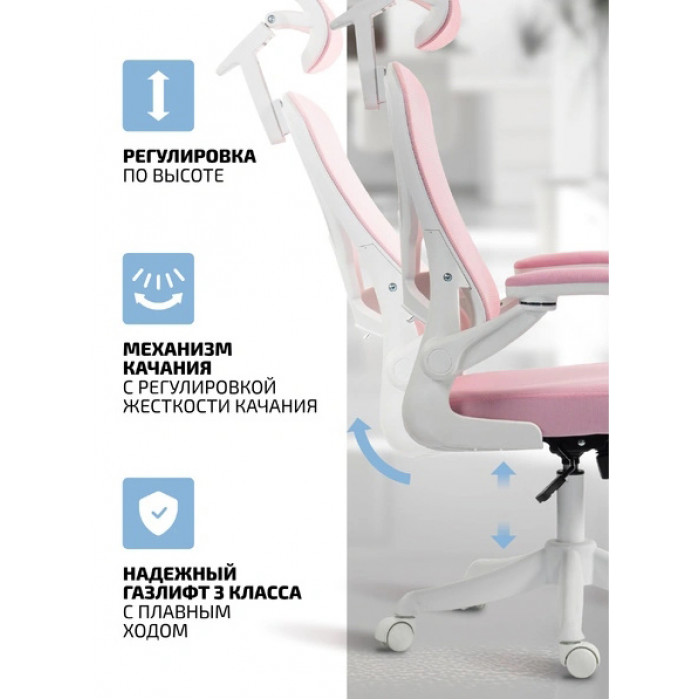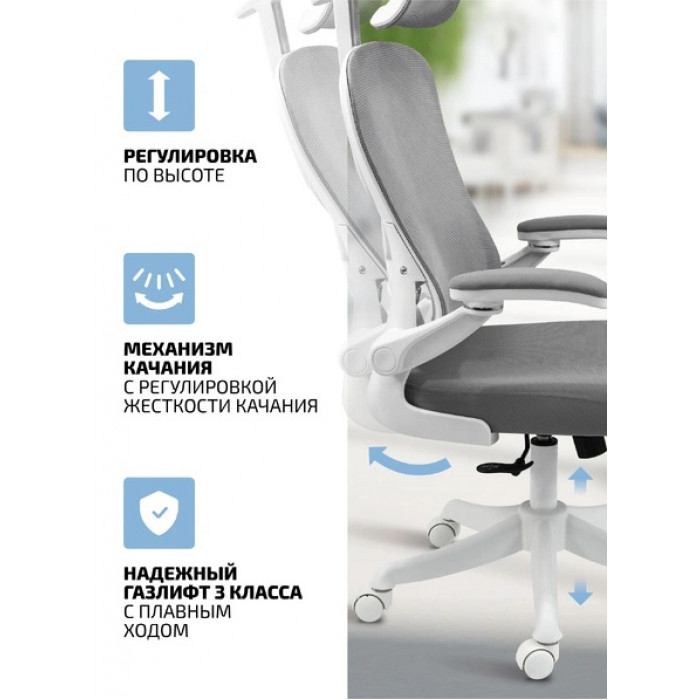 Fendi White с дышащей спинкой и мягким сиденьем подойдёт для офиса или дома. Откидные подлокотники, плавный механизм качания и регулировка высоты обеспечивают удобство и мобильность.