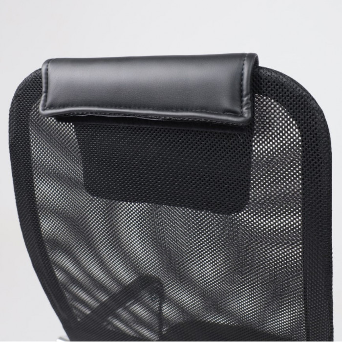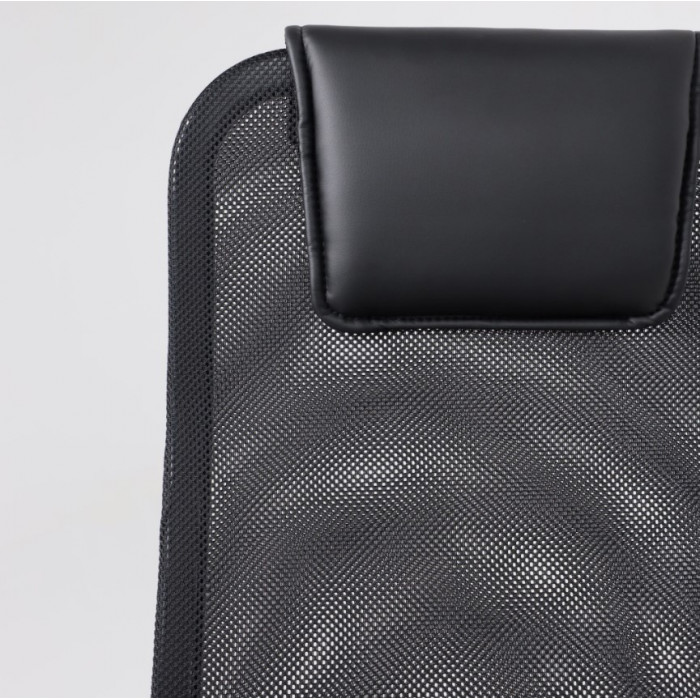 Спинка кресла обита сетчатым материалом, обеспечивающим отличную вентиляцию и поддержку спины. Сиденье выполнено из прочной ткани, обеспечивая комфорт и долговечность. Механизм качания DMS позволяет настроить угол наклона спинки для оптимальной поддержки. Нерегулируемые подлокотники и встроенный подголовник добавляют удобства и поддержки. Кресло оснащено полиуретановыми колесами, обеспечивающими плавное скольжение по любому типу поверхности.