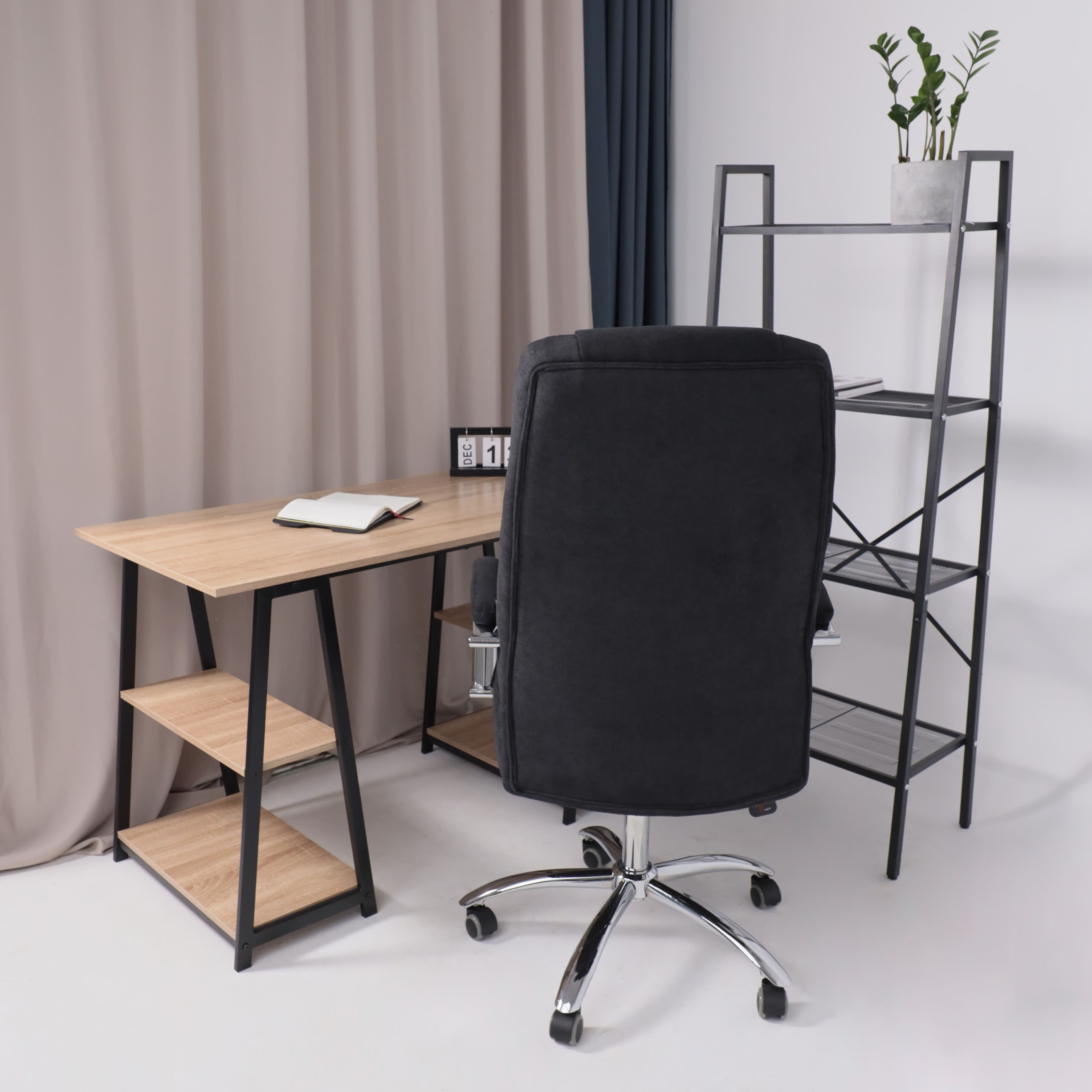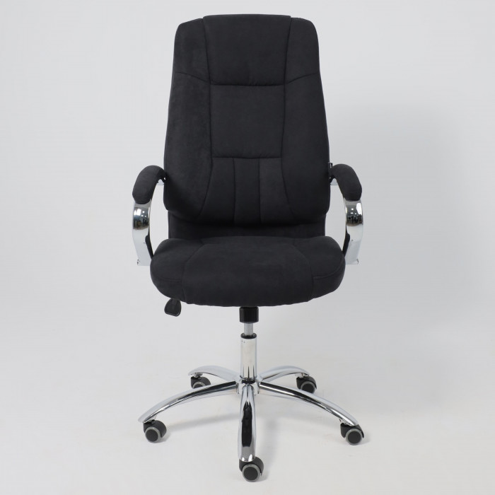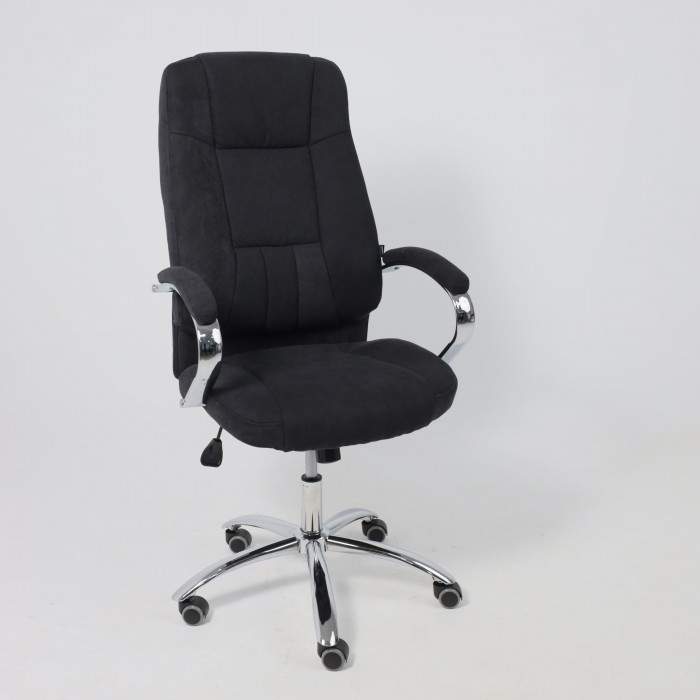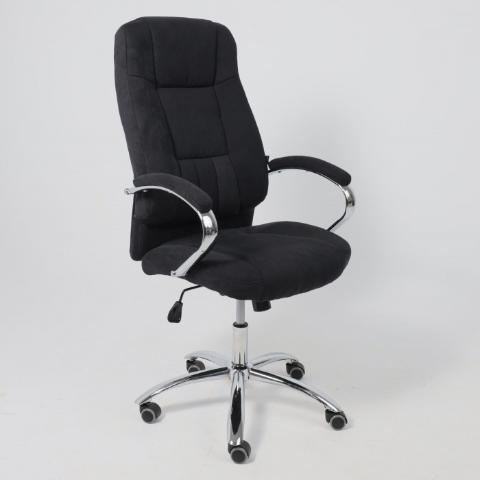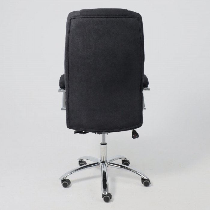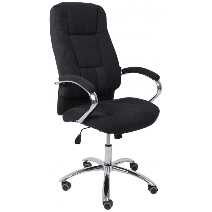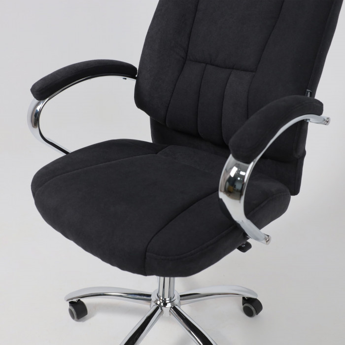 Кресло мягкое, с увеличенной зоной подголовника и выступающими подушками, предотвращающими нагрузки на шею, спину и ноги. Высота сиденья настраивается исходя из индивидуальных параметров владельца. Модель оснащена механизмом качания Anyfix, позволяющим фиксировать угол наклона кресла в разных положениях и регулировать жесткость качания в зависимости от веса пользователя. Дополнительный комфорт обеспечивают хромированные подлокотники с мягкими накладками из кожи. Установлены газлифт 3 класса, металлическая хромированная крестовина и прорезиненные ролики. Изделие выдерживает нагрузку до 150 кг.