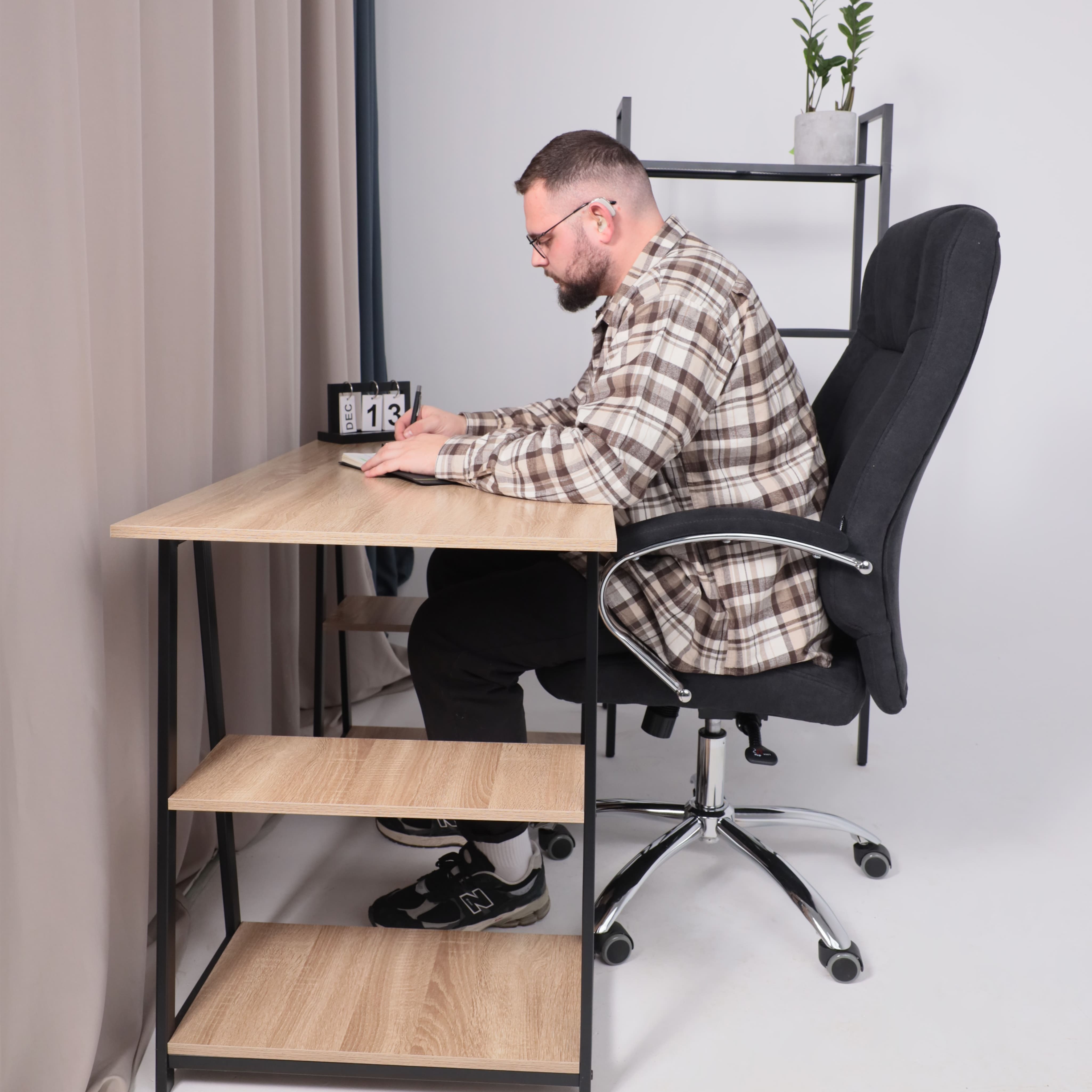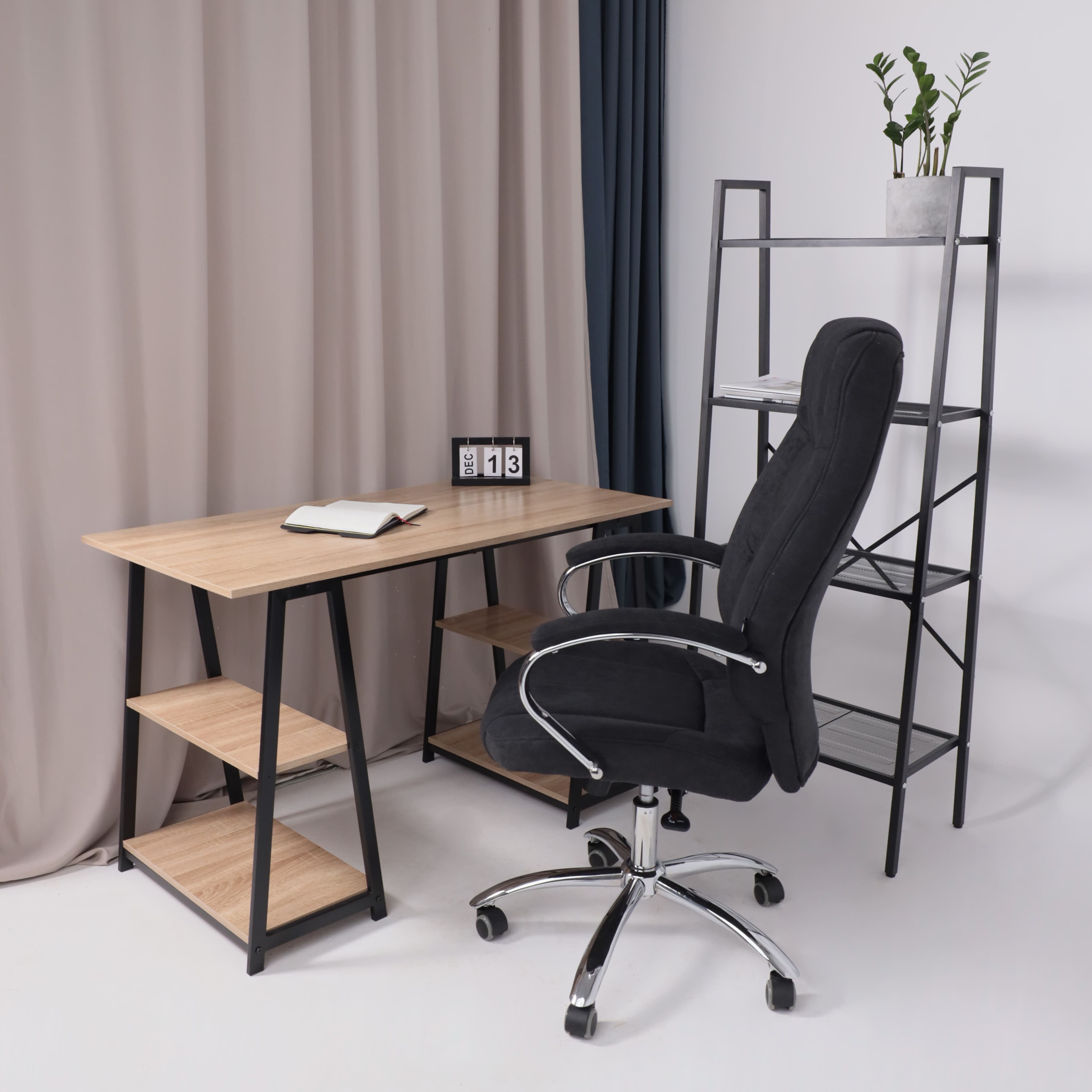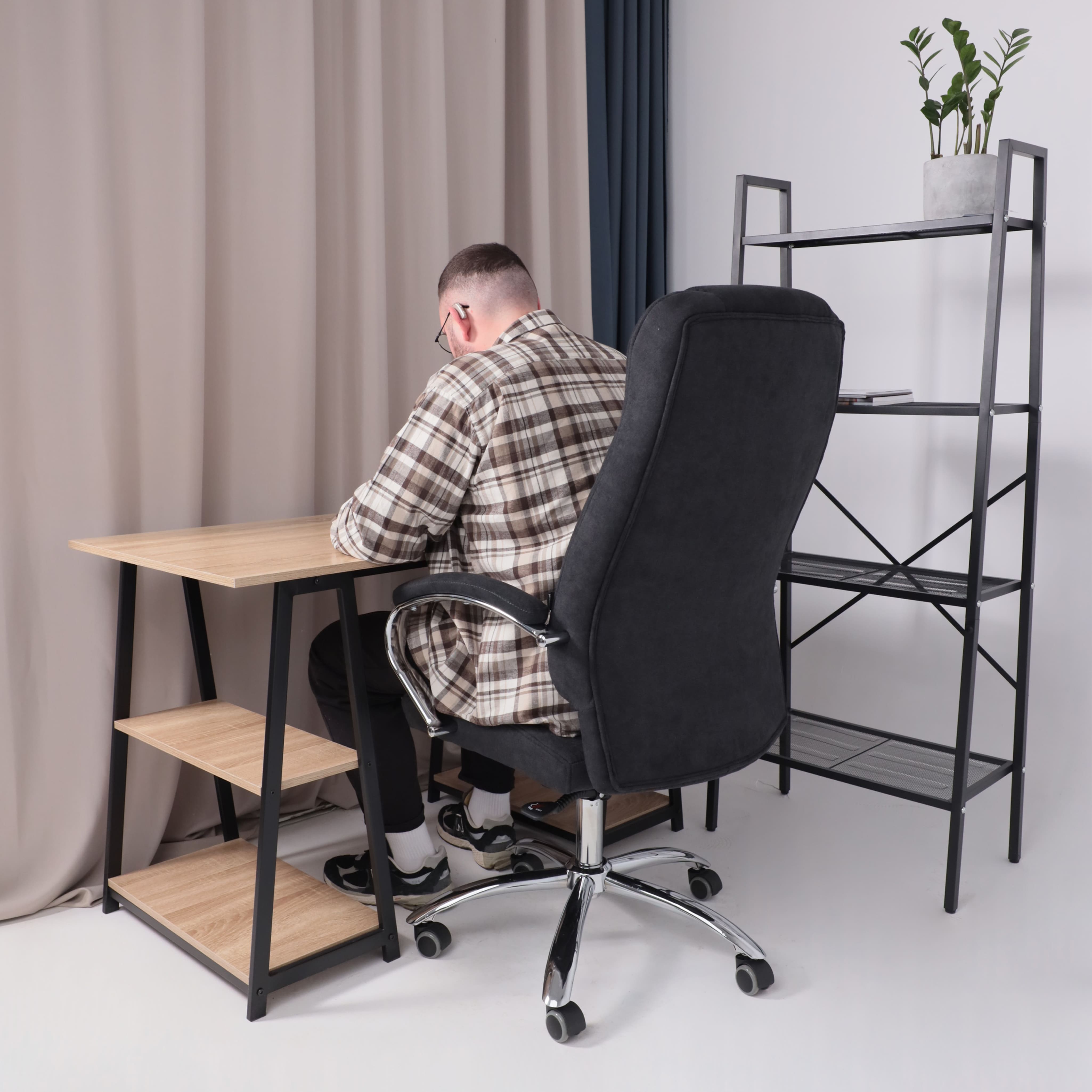 Кресло мягкое, с увеличенной зоной подголовника и выступающими подушками, предотвращающими нагрузки на шею, спину и ноги. Высота сиденья настраивается исходя из индивидуальных параметров владельца. Модель оснащена механизмом качания Anyfix, позволяющим фиксировать угол наклона кресла в разных положениях и регулировать жесткость качания в зависимости от веса пользователя. Дополнительный комфорт обеспечивают хромированные подлокотники с мягкими накладками из кожи. Установлены газлифт 3 класса, металлическая хромированная крестовина и прорезиненные ролики. Изделие выдерживает нагрузку до 150 кг.
