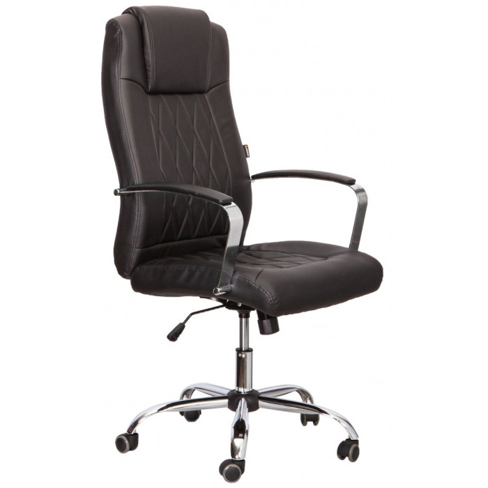 Спинка и сиденье выполнены из искусственной кожи. Такой материал удобен в эксплуатации, благодаря прочности, износостойкости и грязеотталкивающим свойствам. Подлокотники облегчат процесс посадки и вставания, а также позволят снять нагрузку с рук и плеч во время отдыха и работы. Колесики позволят комфортно перемещать кресло с места на место.