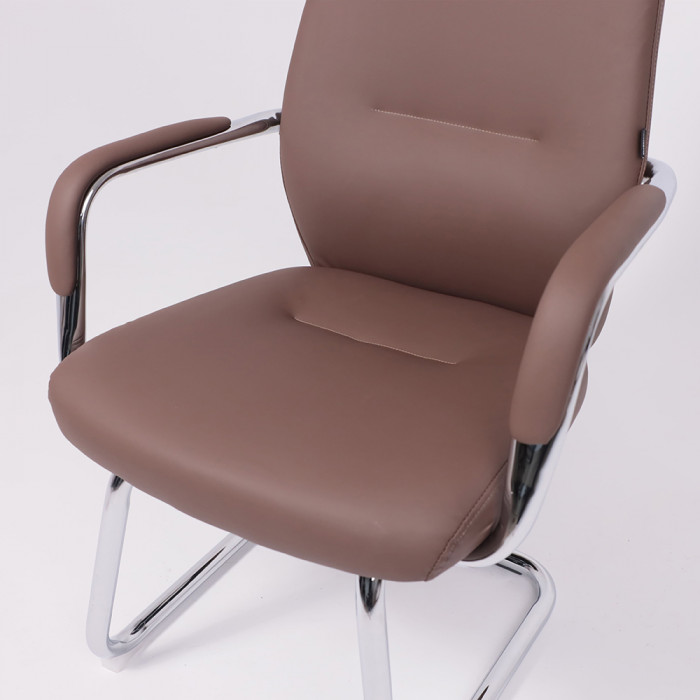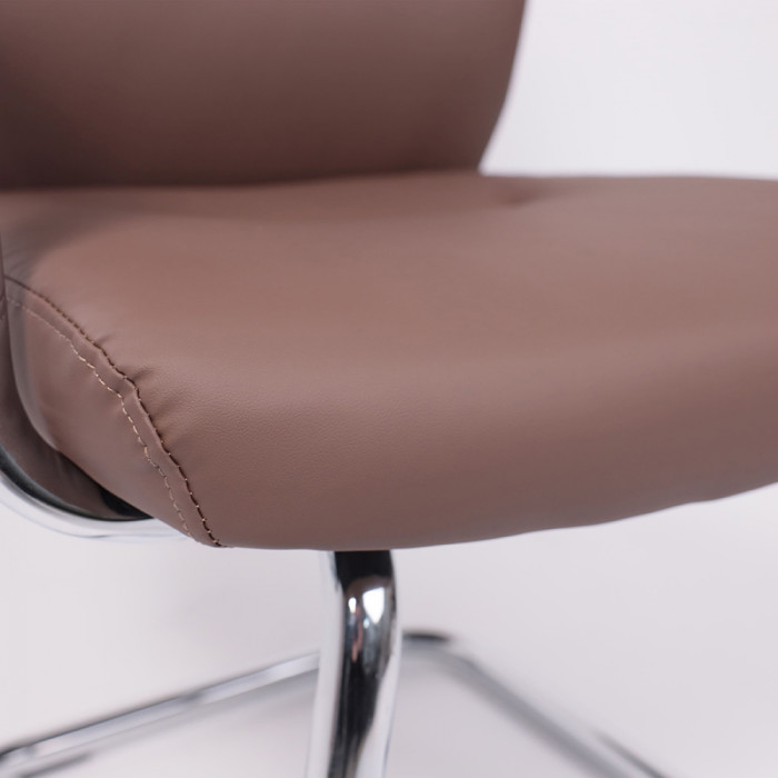 Кресло VELLA с высокой спинкой и металлическим основанием создано для комфортного размещения посетителей в офисе. Экокожа, устойчивая конструкция и нагрузка до 120 кг делают его надежным и презентабельным выбором для зон приема и переговоров.